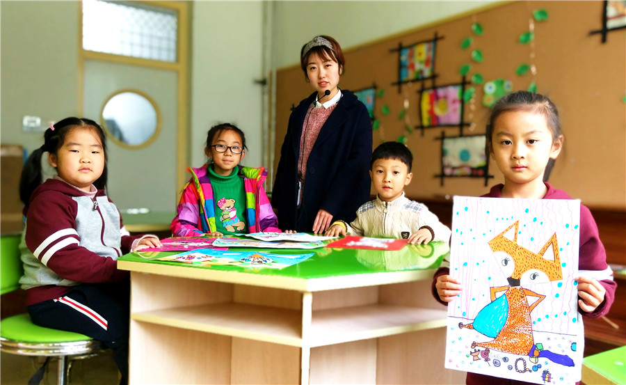 坐在叔叔那里写作业|