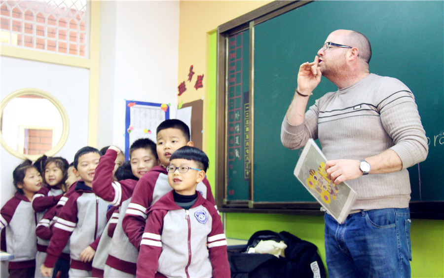 看似簡(jiǎn)單的26個(gè)英文字母,也暗藏玄機(jī)。有的字母要讀兩遍,有的字母不要讀出來(lái),三遍以后學(xué)生們掌握了游戲規(guī)則,字母順序也記得更牢了。