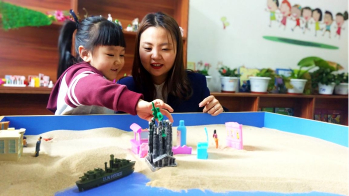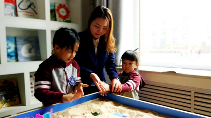 “沙子具有可觸與可移動(dòng)的特性,能夠通過(guò)觸覺(jué)和運(yùn)動(dòng)覺(jué)作用于孩子們的大腦神經(jīng),可以促進(jìn)孩子們注意力的集中。”高迪說(shuō)。