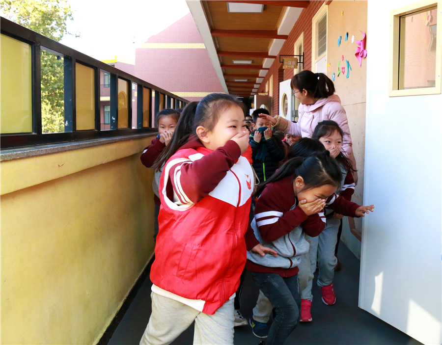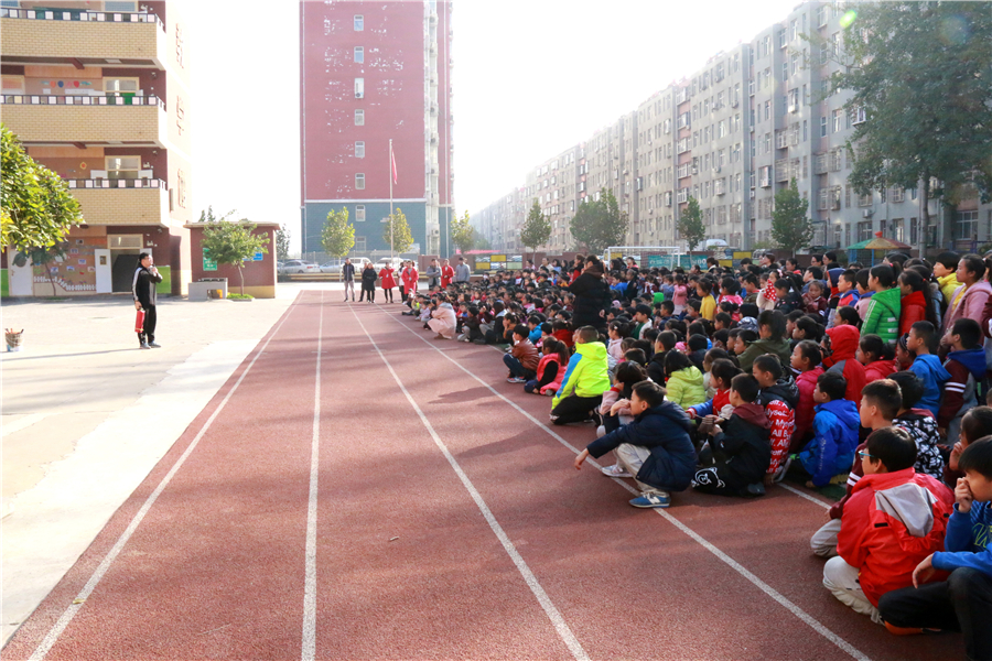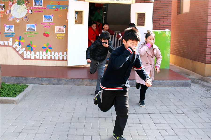 消防記心間 火警電話“119”,發(fā)生火災不亂走。 心不慌、意不亂,按照順序慢疏散。 濕毛巾,捂口鼻,身體前屈頭鄰地..... 11月9日是國家消防安全日,石家莊陽光未來國際小學真實模擬火災現(xiàn)場,開展消防疏散演練活動,讓孩子們在實踐中習得防火知識,增強消防安全意識。 有序 安全第一,確保有序,孩子們列隊整齊,在老師的帶領下,井然有序地排隊下樓。