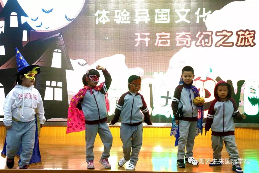 萬圣節(jié)之際,陽光未來國際小學的孩子們穿起化妝服,戴上面具,拿起手工制作的南瓜燈,在屬于自己的舞臺上,無拘無束地釋放天性,在互動體驗中感受西方文化,從小培養(yǎng)國際視野。