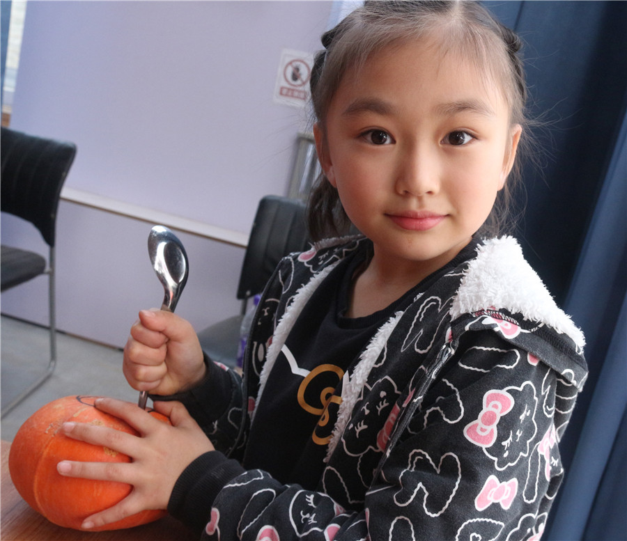 動手、動腦、學會思考是陽光教給孩子們的第二堂課。孩子們擼起袖子,制作泥塑、花饃、南瓜燈,全都沉浸在快樂學習之中。