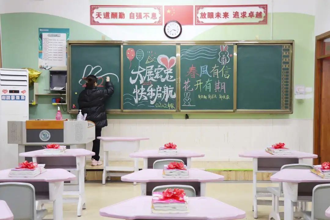 伴著春風(fēng)的和弦,踏著清晨的朝陽。安順陽光未來學(xué)校為了歡迎學(xué)子們回家,老師們?cè)缭鐏淼浇淌矣眯难b扮大家的家園。同學(xué)們的書籍精心整理,各班的板報(bào)也煥然一新。親切溫暖的問候、創(chuàng)意滿滿的教室布置、充滿驚喜的小禮物...用滿滿的儀式感開啟新學(xué)期的篇章。
