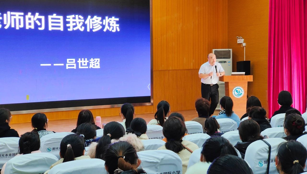 呂世超老師 專家引領(lǐng)促成長,強(qiáng)科培優(yōu)在行動(dòng)!陽光未來小學(xué)聘請(qǐng)全國著名教育專家呂世超老師進(jìn)校指導(dǎo)。 “師者,以德為先”,高尚的師德師風(fēng)是教師素質(zhì)的靈魂。為落實(shí)立德樹人根本任務(wù),加強(qiáng)教師隊(duì)伍建設(shè),提高教師的綜合素質(zhì)和職業(yè)道德修養(yǎng),全體教師齊聚報(bào)告廳,聆聽了《一個(gè)好老師的自我修煉》師德師風(fēng)專題講座。