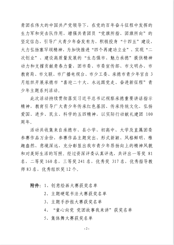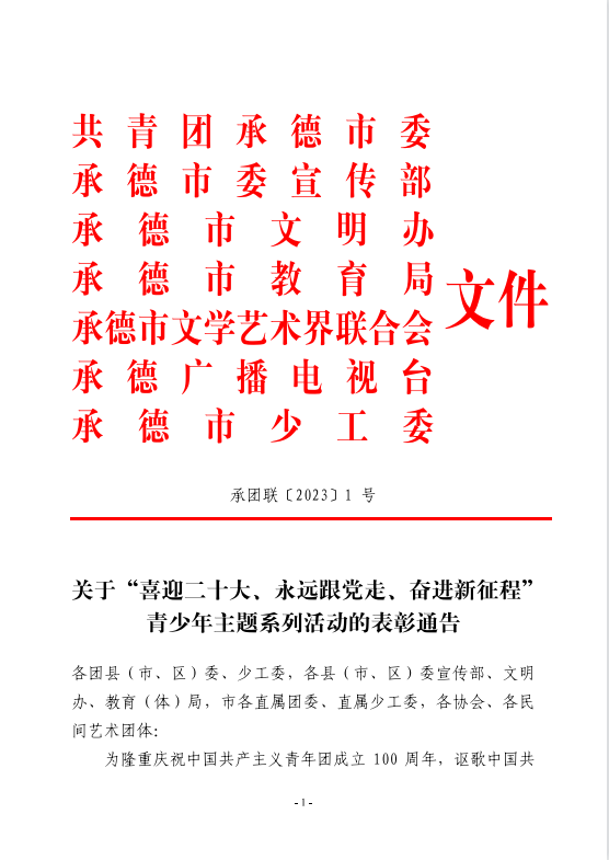 近日,承德市“喜迎二十大、永遠(yuǎn)跟黨走、奮進(jìn)新征程”青少年主題系列活動(dòng)評(píng)審結(jié)果揭曉,我校榮獲“優(yōu)秀組織獎(jiǎng)”,多人參賽作品獲獎(jiǎng),同時(shí),車(chē)曉鈺、劉冰老師榮獲“優(yōu)秀指導(dǎo)教師獎(jiǎng)”。