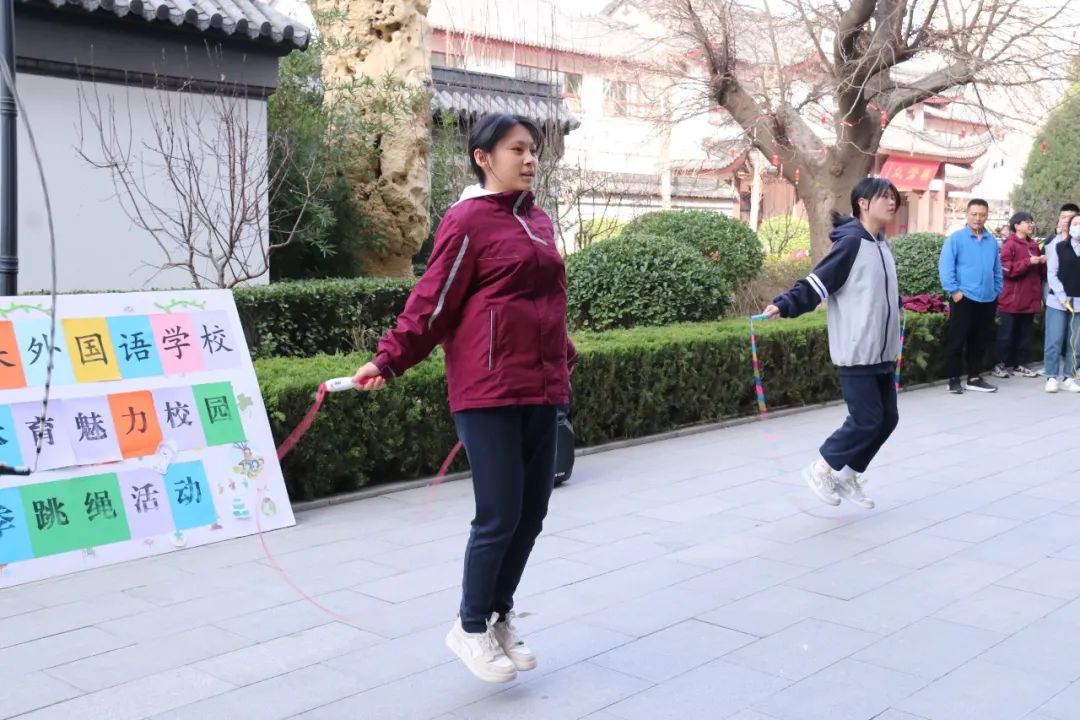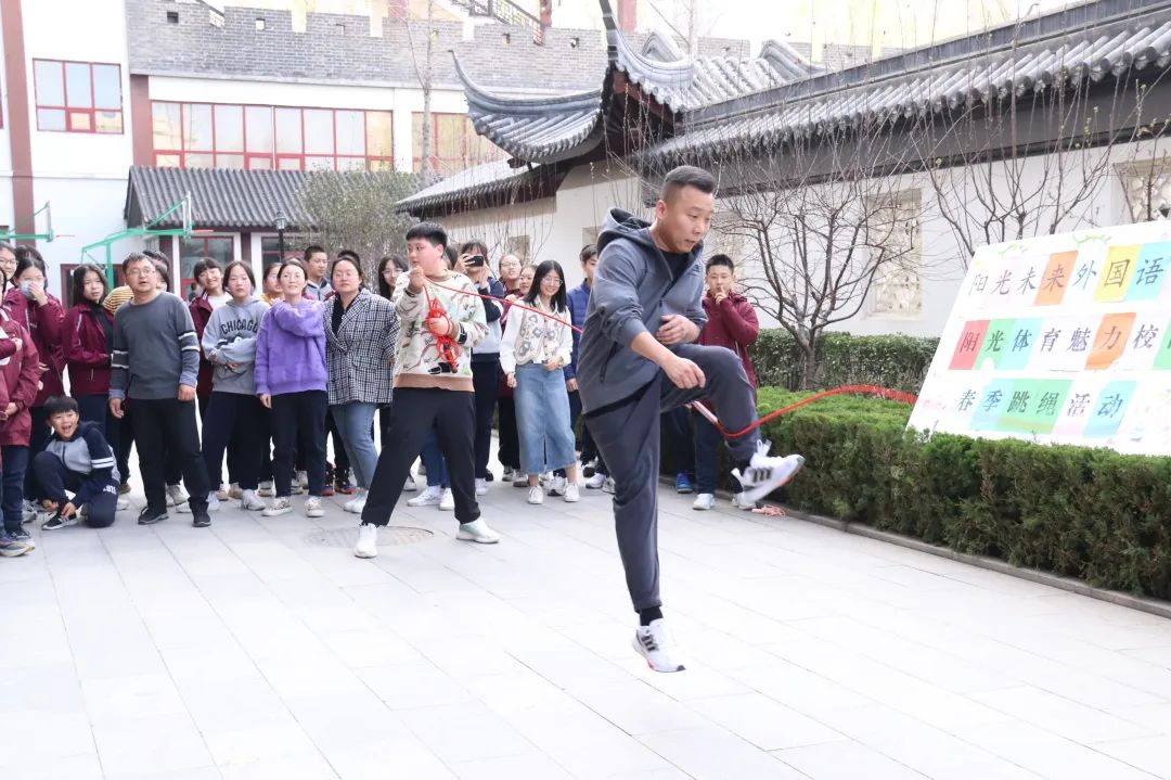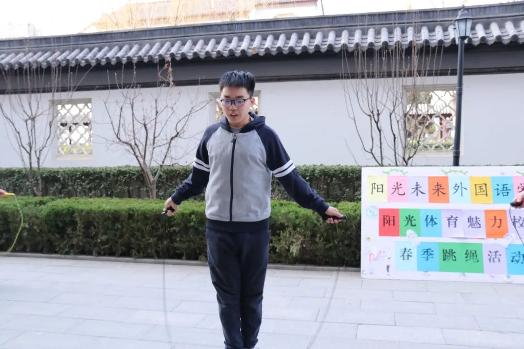 春光為序,向美而行。在春光明媚、萬物復(fù)蘇的季節(jié),為了活躍學(xué)生的業(yè)余文化生活,增強(qiáng)學(xué)生的體質(zhì),增進(jìn)各同學(xué)之間的友誼,凝人氣、聚力量。陽光未來外國語學(xué)校于3月8日至3月10日舉行了為期三天的跳繩比賽。本次比賽分為個人跳繩、萬眾齊心跳和“8”字跳大繩三個項目。初中部師生歡聚比賽現(xiàn)場,共享體育盛宴。 單人跳繩達(dá)人