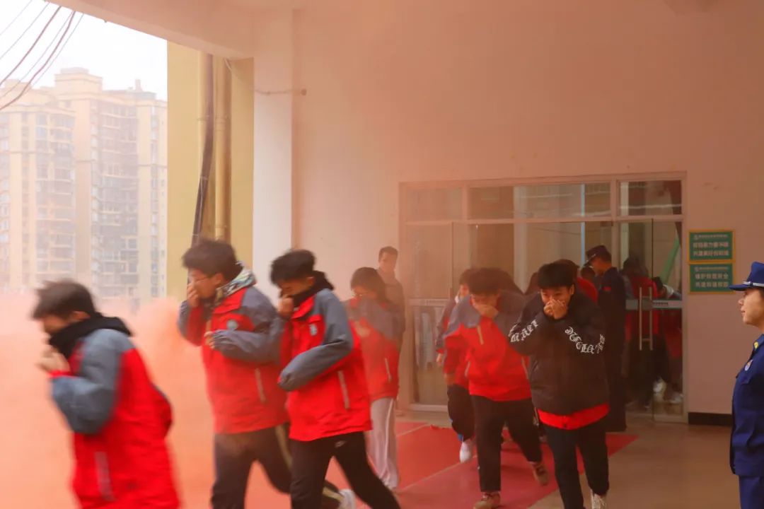 宣講結(jié)束后,警鈴驟響,全校師生迅速啟動(dòng)應(yīng)急預(yù)案,各班老師迅速到位,引導(dǎo)學(xué)生逃生,按照既定的線路有序疏散,師生們用手捂住口鼻,彎腰低姿快速撤離到操場,整個(gè)疏散過程安全有序、快速高效。