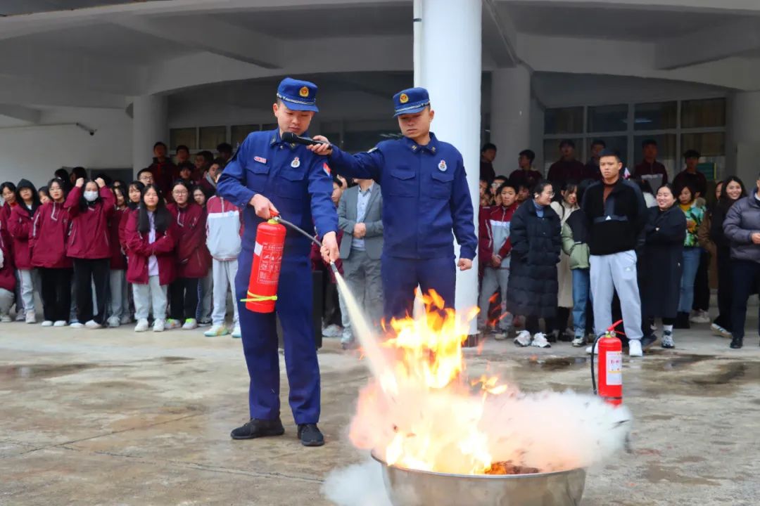 隨后,消防宣傳員還現(xiàn)場為大家演示了滅火器的使用方法。為讓師生準(zhǔn)確明白如何使用滅火器,學(xué)校師生代表實(shí)地操作滅火器,經(jīng)過不斷的學(xué)習(xí)和嘗試,師生們由開始的生疏,到最后均能嫻熟的使用。