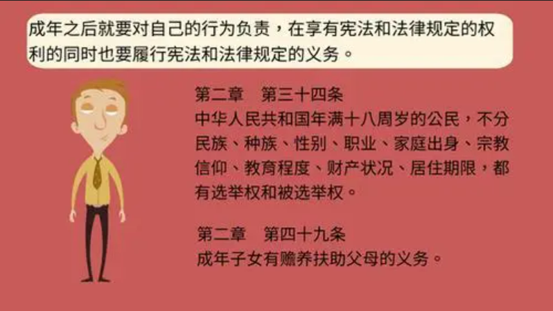 成年之后也要對自己的行為負責,在享有憲法和法律規(guī)定的權利同時也要履行憲法和法律規(guī)定的義務。