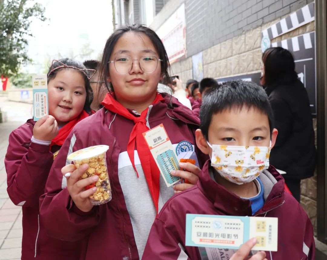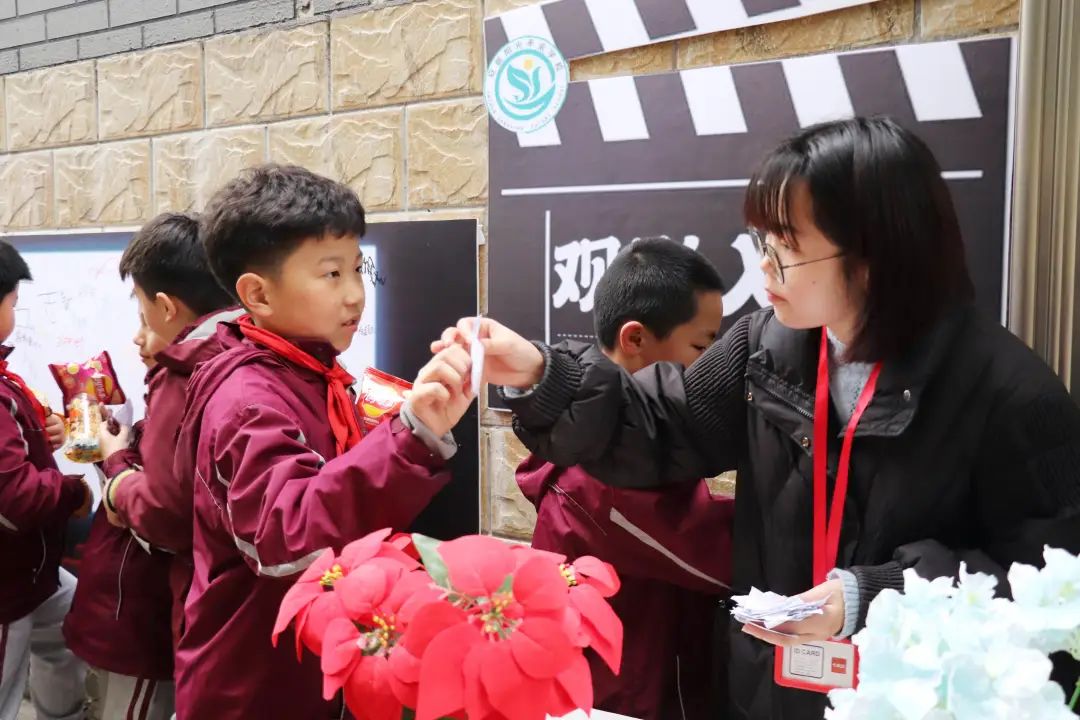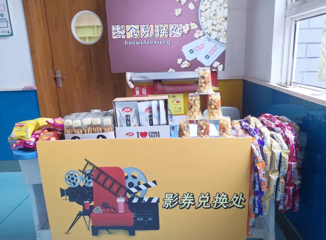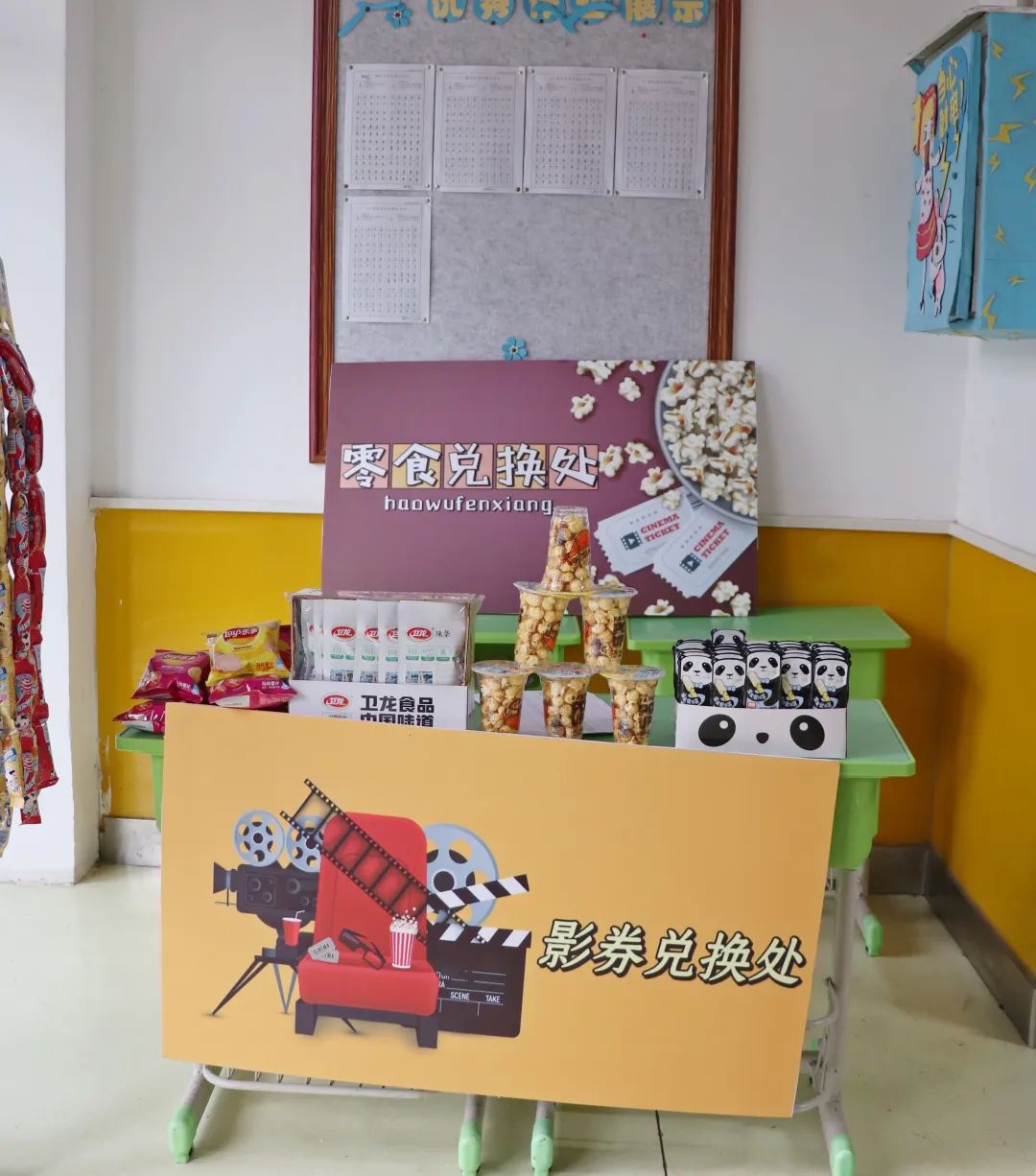 榮格說過:“一個人一生的努力,就是在整合他自童年時代起就已形成的性格。”孩子是幸運的,還有足夠的時間與陽光的環(huán)境向著明亮那方前進。 觀影前,各班教師已準(zhǔn)備好影券、零食兌換處,孩子們通過平時的學(xué)習(xí)成果累計積分來換取電影券與喜歡的零食并簽字留下“足跡”、合影留念,把德育內(nèi)化為孩子們自身成長、激發(fā)學(xué)習(xí)的動力。