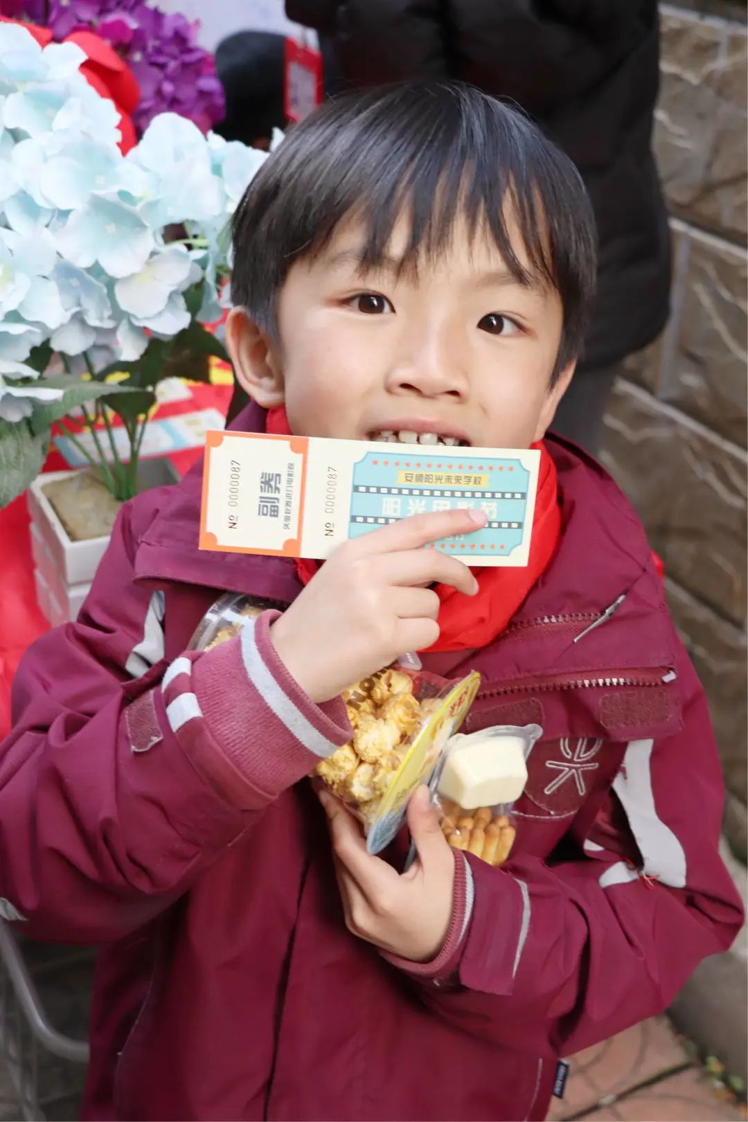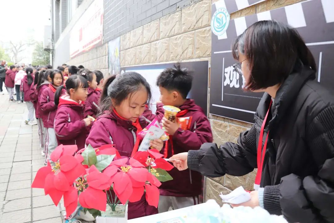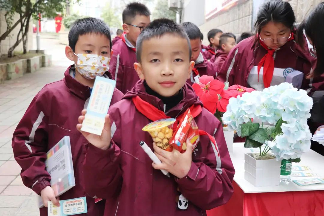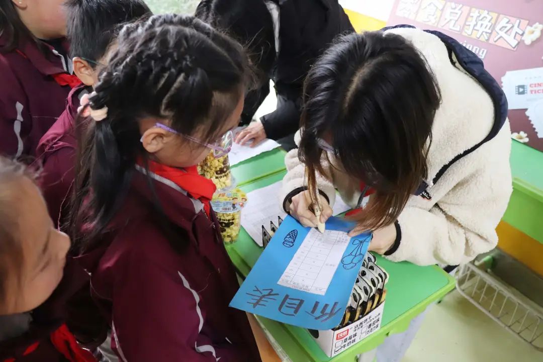 榮格說過:“一個人一生的努力,就是在整合他自童年時代起就已形成的性格。”孩子是幸運的,還有足夠的時間與陽光的環(huán)境向著明亮那方前進。 觀影前,各班教師已準(zhǔn)備好影券、零食兌換處,孩子們通過平時的學(xué)習(xí)成果累計積分來換取電影券與喜歡的零食并簽字留下“足跡”、合影留念,把德育內(nèi)化為孩子們自身成長、激發(fā)學(xué)習(xí)的動力。