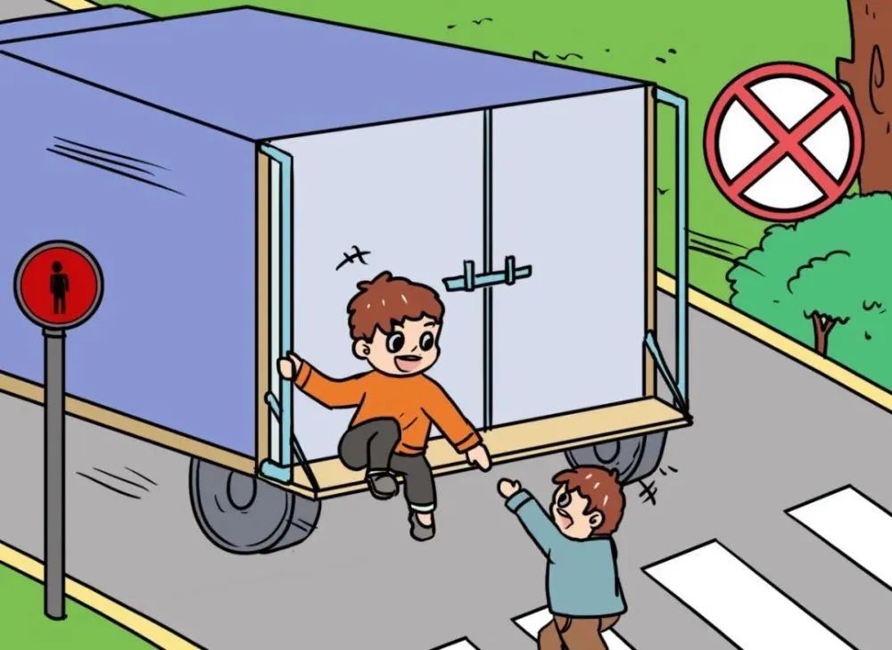不要扒車、追車、拋物擊車: 千萬不要因?yàn)樨澩娑プ汾s正在行駛中的車輛,這很容易導(dǎo)致撞上行人、滑倒、電線桿等危險(xiǎn),輕則傷,重則亡。扒車更是不要,如果跟著車輛跑,車輛一旦停下,那么有可能會(huì)被車輛撞倒。