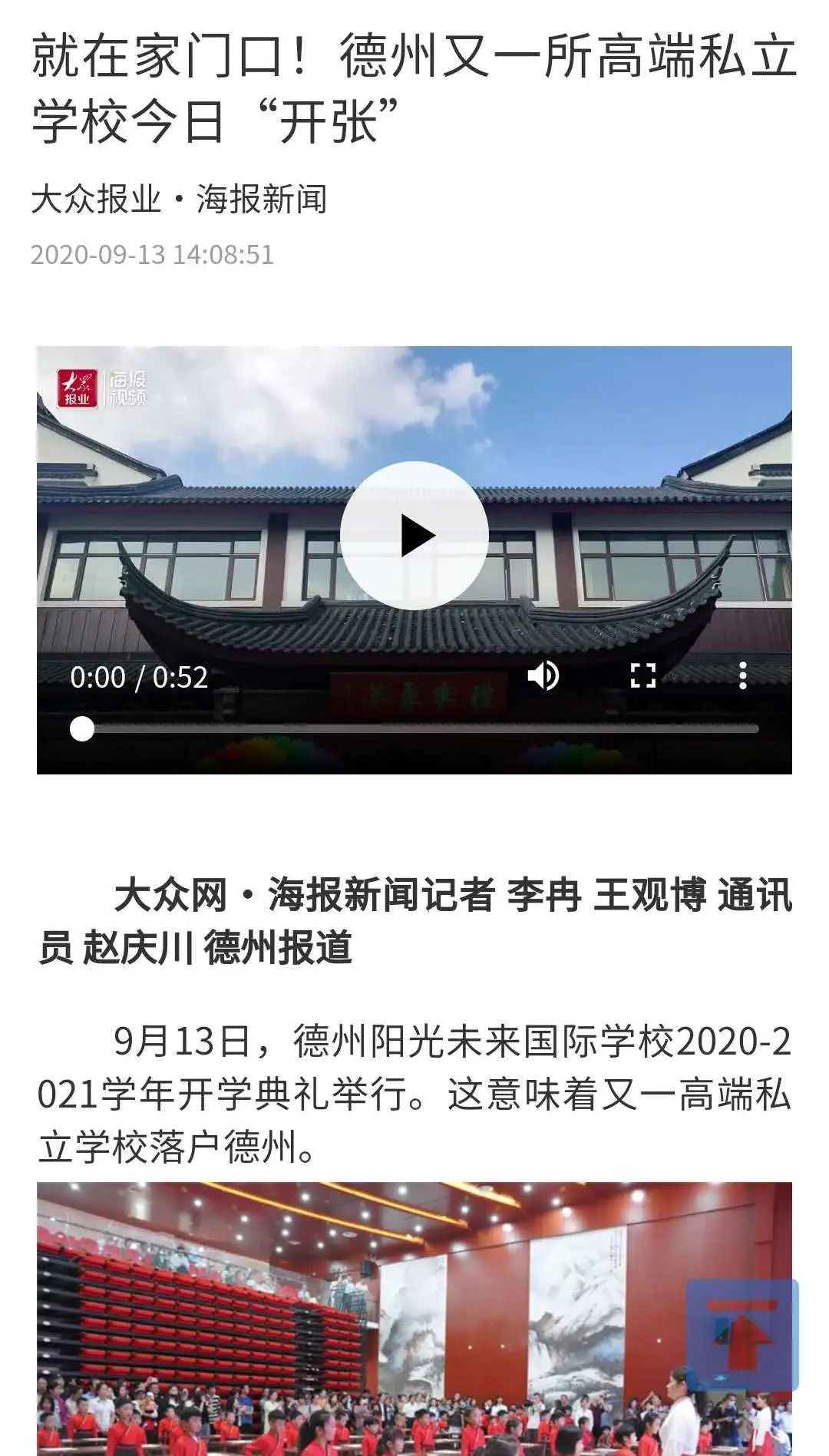 大眾網(wǎng):陽光未來國際學(xué)校——又一所高端私立學(xué)校落戶德州