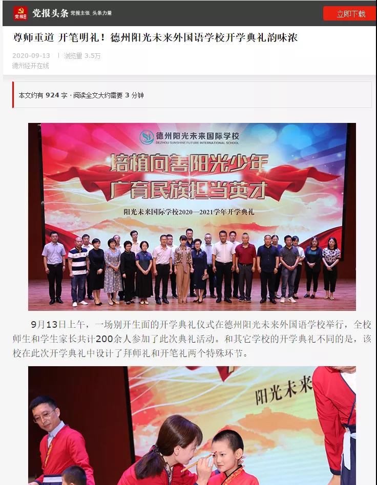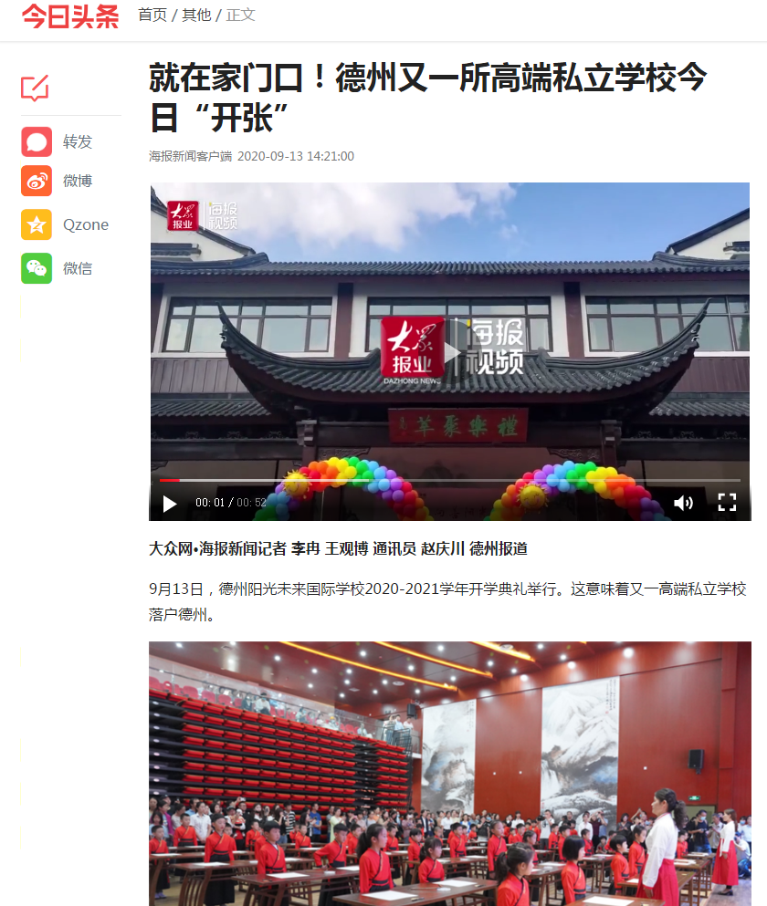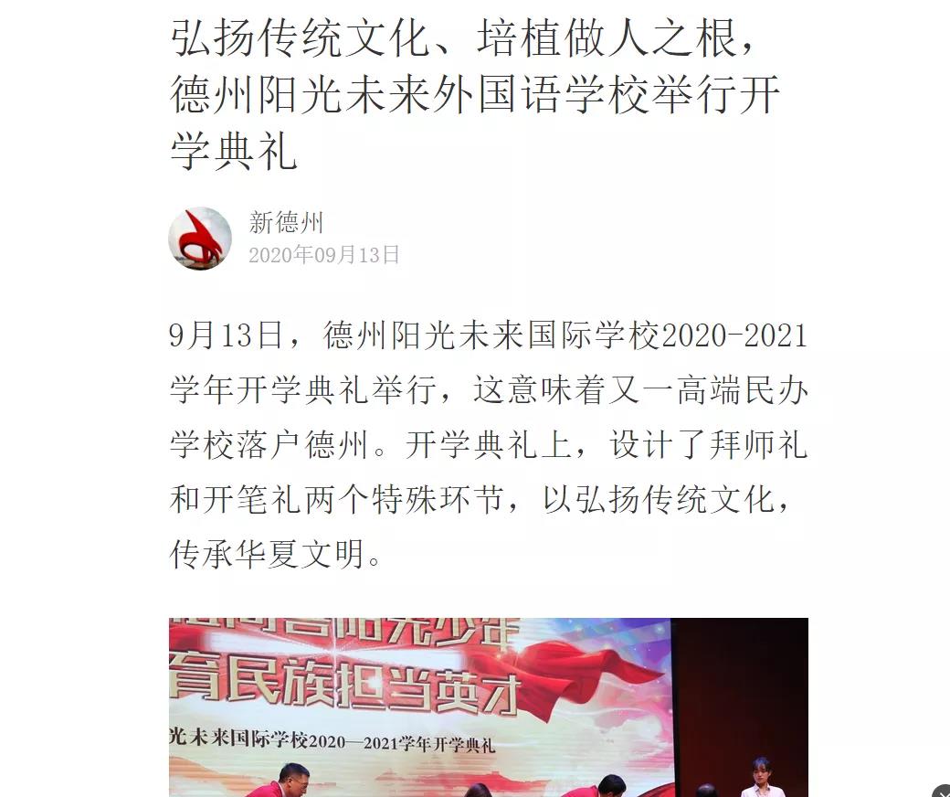 讓我們跟隨各大媒體一覽 德州陽光未來國際學(xué)校 此次開學(xué)典禮的盛況吧 ?。?!