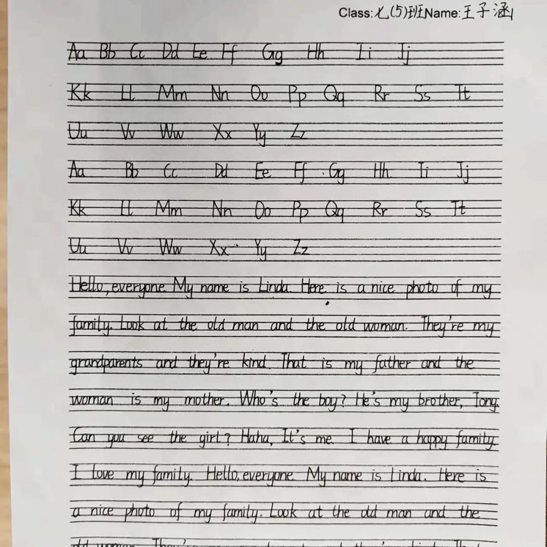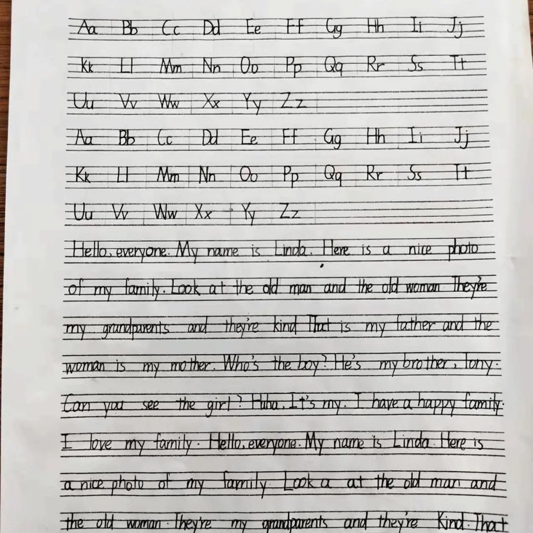 本次英文書寫大賽意在幫助學(xué)生改正在寫作業(yè),做練習(xí)時(shí),不知怎么正確書寫英文字母及單詞的問題,讓學(xué)生能夠區(qū)分英文“直體”和“斜體”書寫的要點(diǎn),進(jìn)而讓學(xué)生更加注重英文書寫的質(zhì)量,從而有效提升英文書寫水平。對促進(jìn)形成規(guī)范書寫,認(rèn)真寫英文單詞的良好氛圍起到推動(dòng)作用。 |