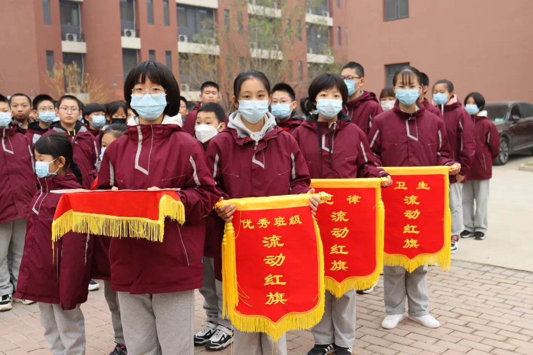 各班班主任分別為優(yōu)秀班集體頒發(fā)流動(dòng)紅旗