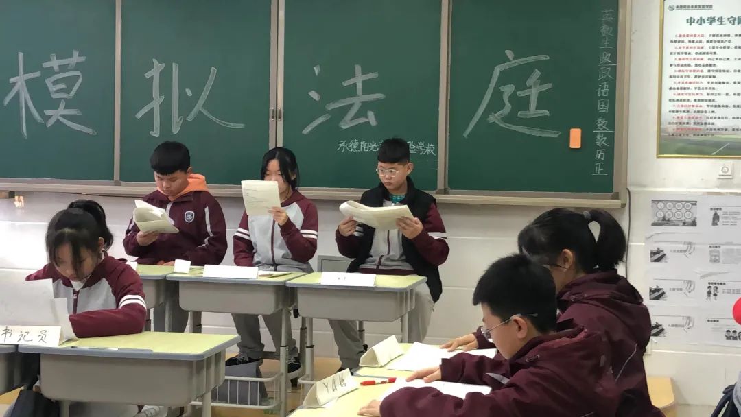 這場(chǎng)模擬庭審是由我校初中部七年級(jí)道德與法治課組織的“法制宣傳暨模擬法庭活動(dòng)”。
