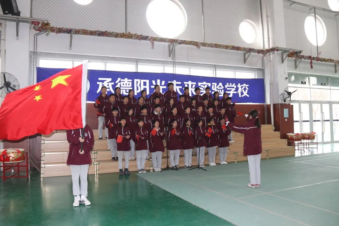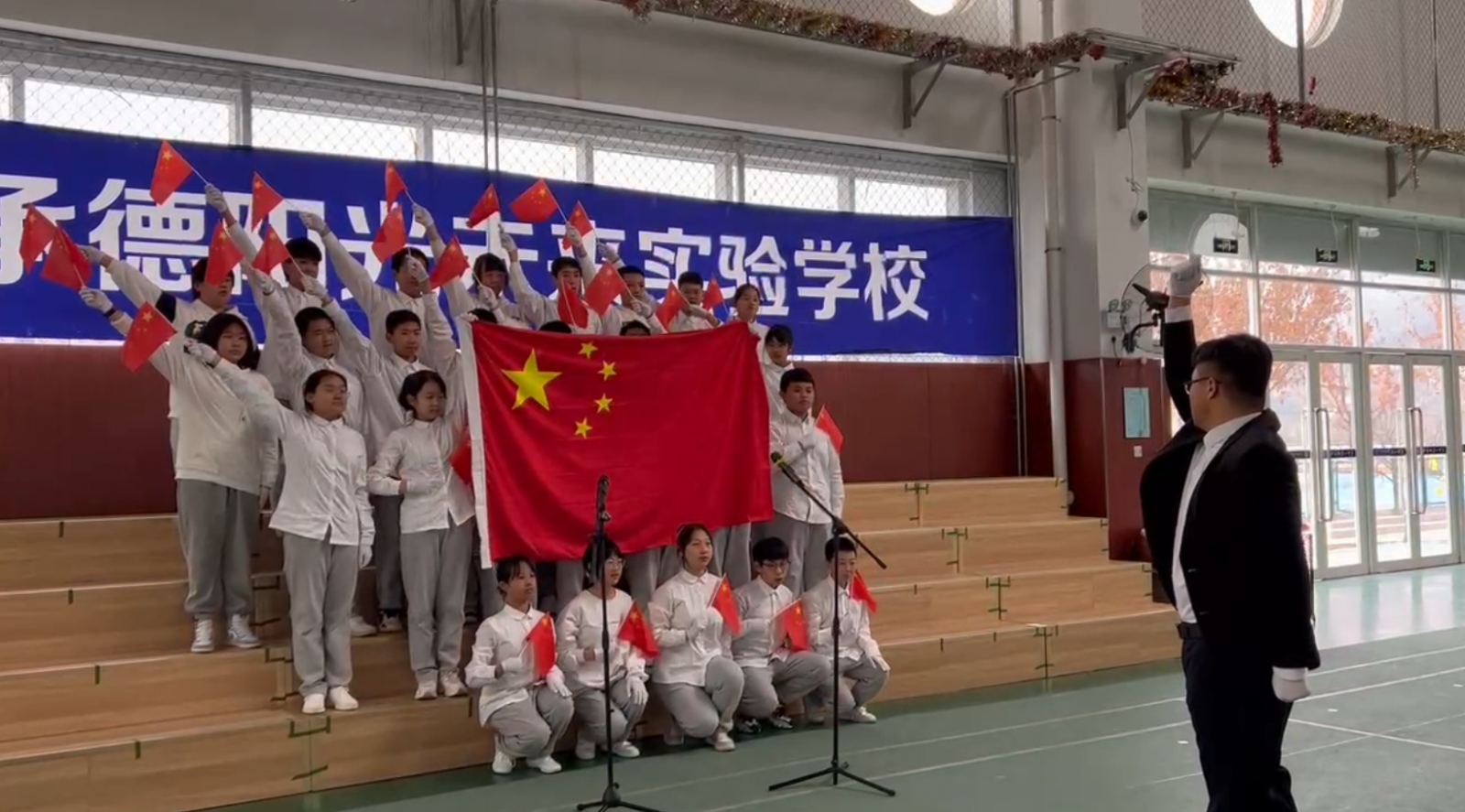 比賽最后,同學(xué)們高舉國旗,全場師生共同歡唱《歌唱祖國》祝愿偉大的祖國繁榮昌盛!