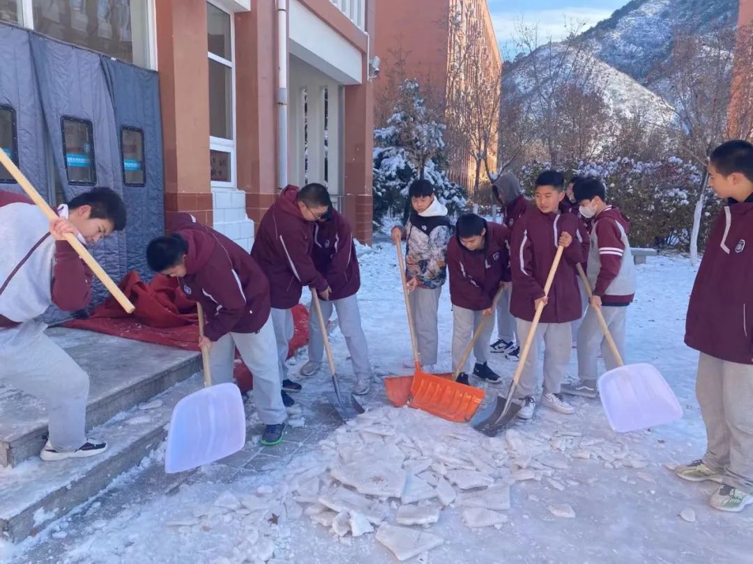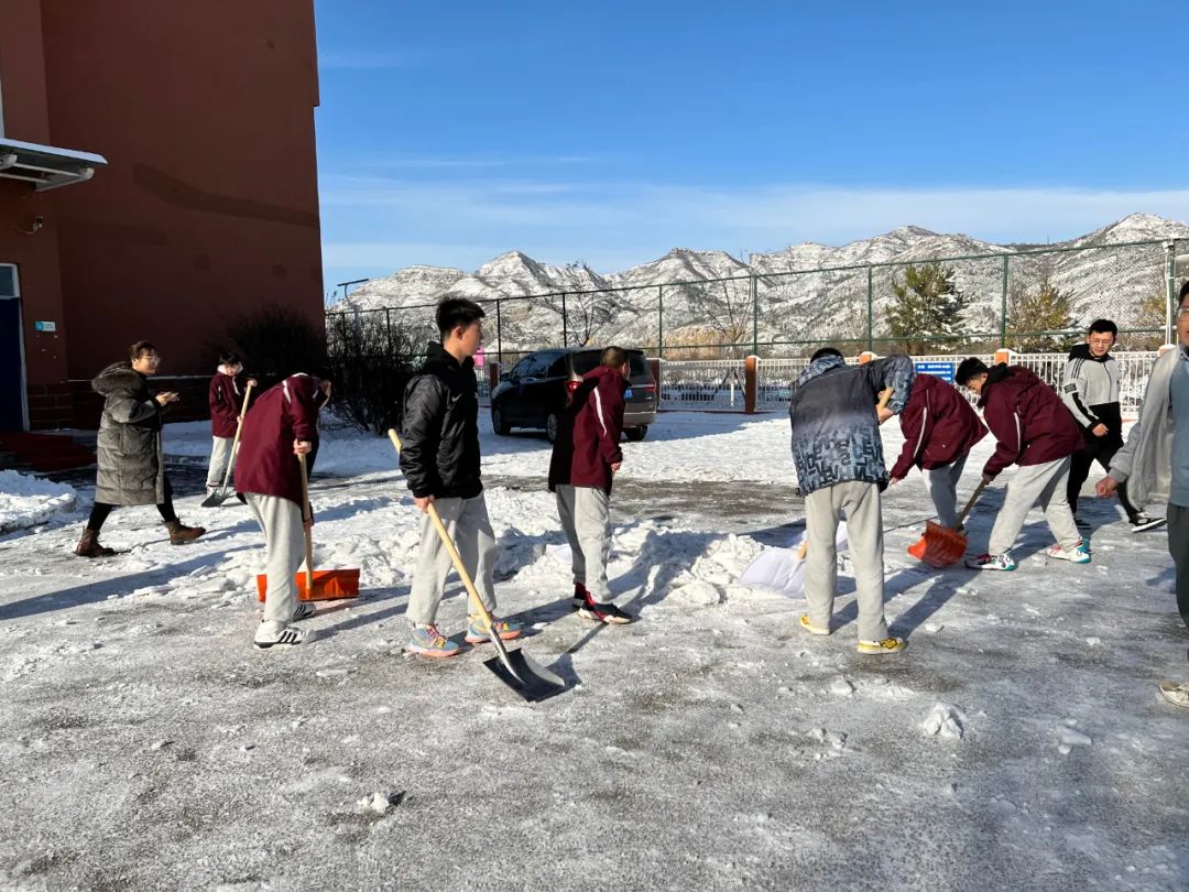 11月8日,我校迅速組織師生清除校園內(nèi)主干道積雪,確保校園道路安全通暢,環(huán)境整潔有序。在學(xué)校領(lǐng)導(dǎo)的細(xì)致安排下,我校師生紛紛拿著鐵鍬、除雪鏟等工具,積極踴躍的加入到鏟雪除冰隊(duì)伍中,鏟除冰雪的熱情高漲。