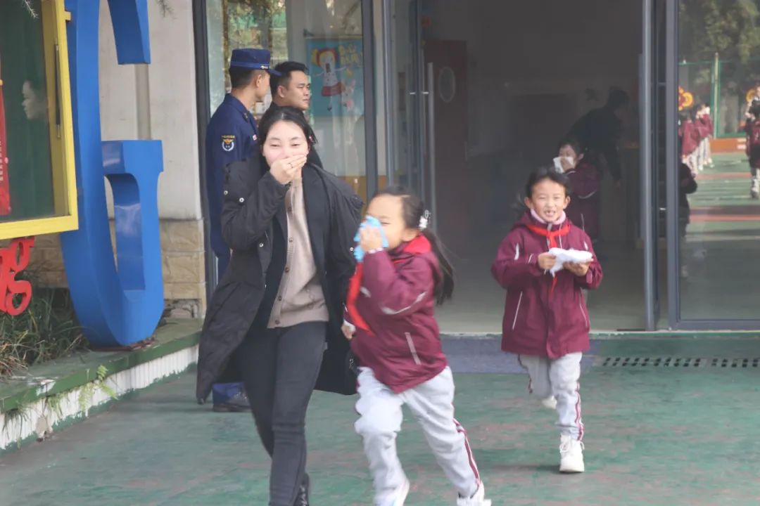下午2:00整,樂之樓放出濃煙滾滾。值班老師接到火警報告后,發(fā)出緊急撤離信號。全體師生聽到撤離哨聲后迅速有序疏散,撤離至安全區(qū)域,并清點各班人數(shù)。
