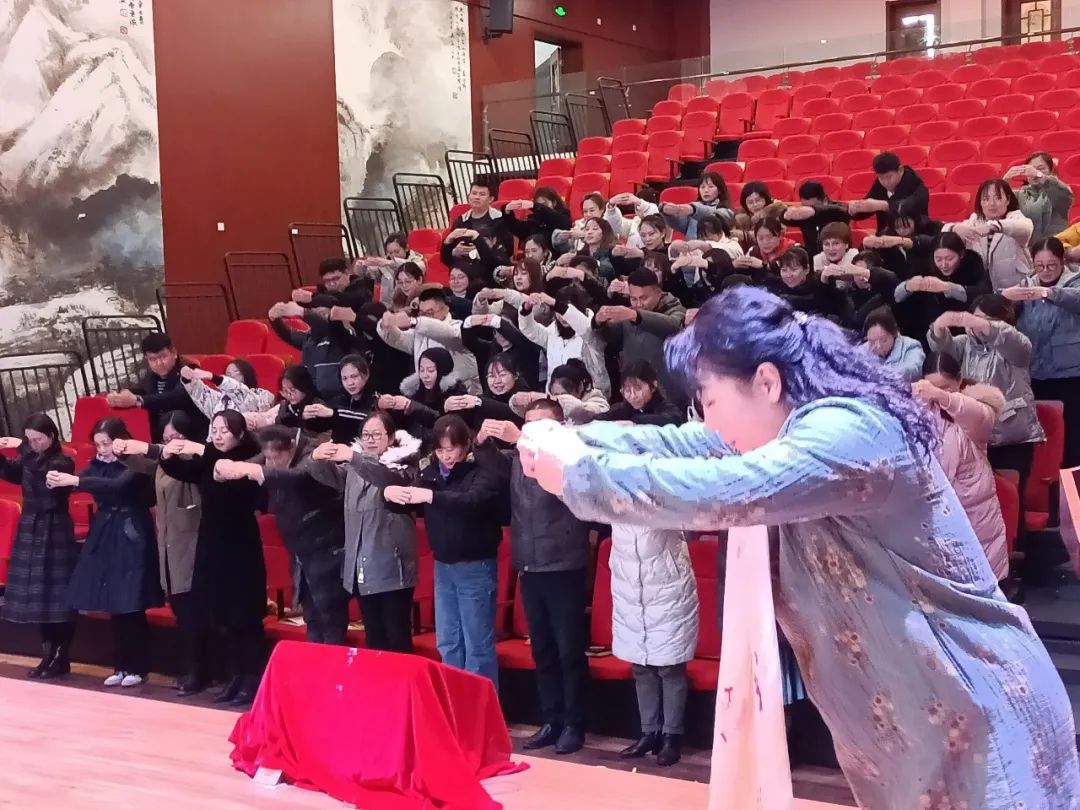 大禮站著行要行三個(gè),叫“再拜額手”,相當(dāng)于古代的“再拜稽首”。通過趙軍老師的講解,令在座的教師們對中國傳統(tǒng)文化又有了深刻的認(rèn)識(shí)。