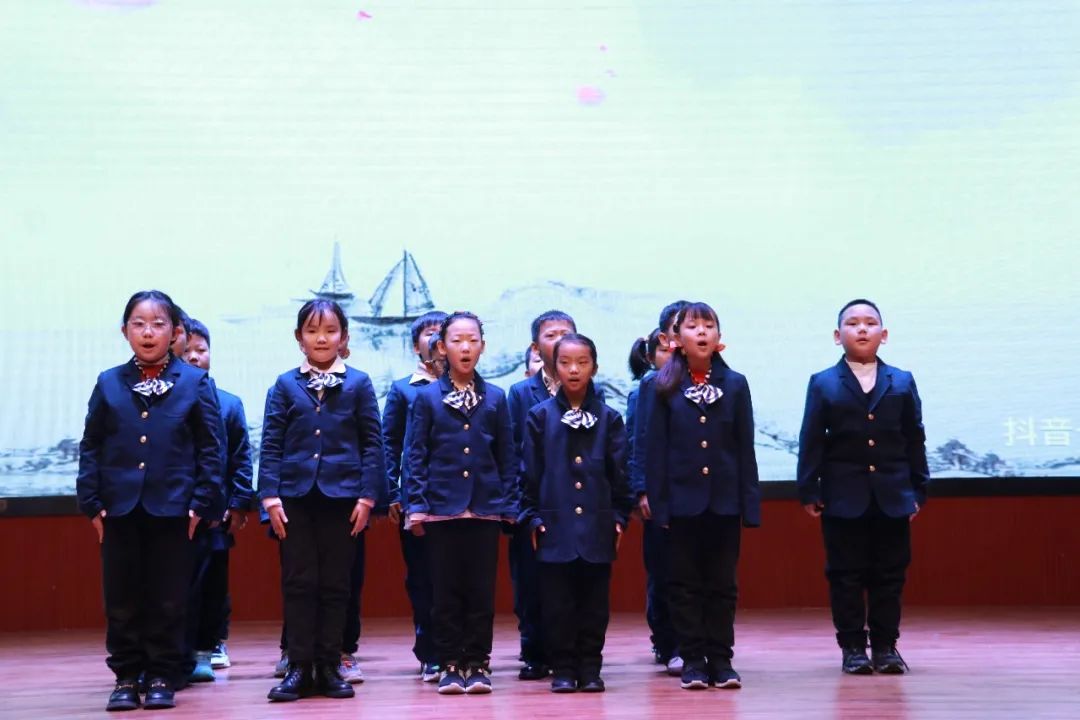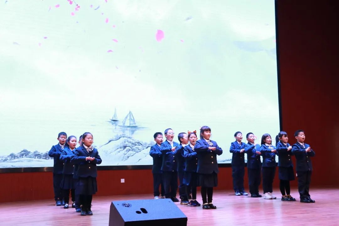 三年級(jí)(2)班 《老子》四、五、六、七章 古詩《山行》 三年級(jí)的同學(xué)們信心滿滿,他們的朗誦慷慨激昂、聲情并茂。 四年級(jí)同學(xué)們的誦讀篇目:《論語》學(xué)而篇第一(一)(二)(三)(四)、 為政篇第二(一)、(二)、(三) 古詩:《鹿柴》、《暮江吟》、《題西林壁》、《雪梅》、《夏日絕句》、《別董大》、《觀滄?!?、《飲酒》、(其五)《行路難》(其一)
