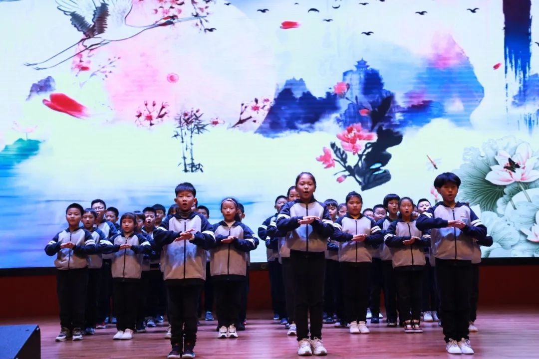 五年級(jí)(2)班 《論語》述而篇七(三)章 古詩《己亥雜詩》 五年級(jí)的同學(xué)們,他們氣勢磅礴,口號(hào)響亮,朗誦時(shí)非常的專注,他們神采飛揚(yáng),每個(gè)動(dòng)作都充滿了自信。 六年級(jí)的同學(xué)們誦讀篇目:《孟子》梁惠王章句上(一)、(二)、(三)、(四)、(五)《孟子》梁惠王章句上(六)、(七) 古詩:《宿建德江》、《過故人莊》、《春日》、《六月二十七日望湖樓醉書》、《西江月 夜行黃沙道中》