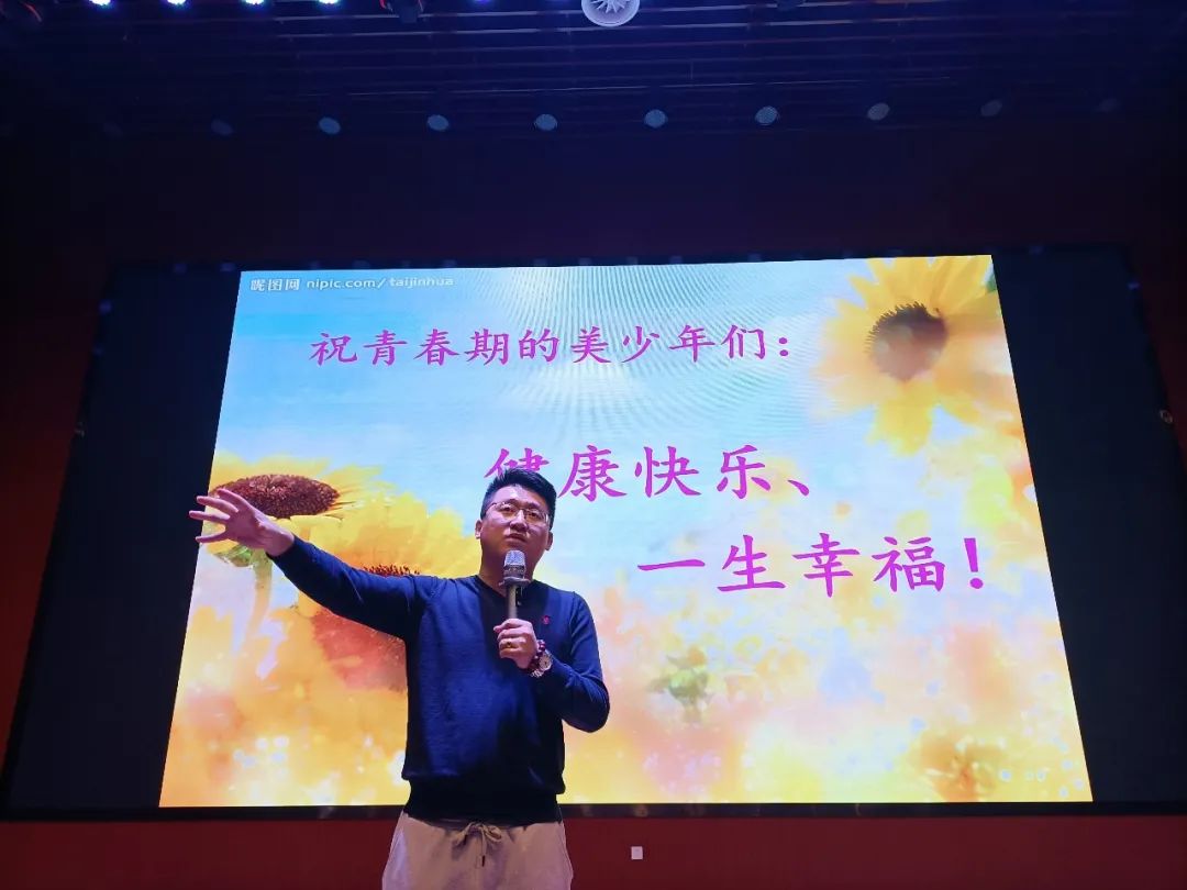 加強(qiáng)對(duì)青少年的青春期知識(shí)教育,能夠幫助青少年正視自己的變化,愉快的接受自己,并且掌握解決煩惱的科學(xué)方法和途徑。這在青春期是非常必要的,對(duì)青少年的發(fā)展至關(guān)重要。所以青春期教育活動(dòng)成為重要的一環(huán)。為了學(xué)生健康成長(zhǎng),讓青少年了解學(xué)習(xí)有關(guān)青春期的生理衛(wèi)生、心理衛(wèi)生、性心理和性道德等方面知識(shí)。德州陽(yáng)光未來(lái)國(guó)際學(xué)校對(duì)于將要進(jìn)入青春期的同學(xué)們或者已經(jīng)在青春期的同學(xué)們特此開展以“自律、自愛、自律健康過(guò)渡青春期”、“讓青春的花蕾,更美”為主題的青春期教育活動(dòng)。本次參加活動(dòng)的對(duì)象是五年級(jí)~八年級(jí)同學(xué)們?;顒?dòng)于11月29號(hào)晚分兩個(gè)會(huì)場(chǎng)同時(shí)舉行。分別是男生場(chǎng)和女生場(chǎng)。女生場(chǎng)主講人是分管教育教學(xué)校長(zhǎng),男生場(chǎng)主講人是德育中心主任祁志顯主任。