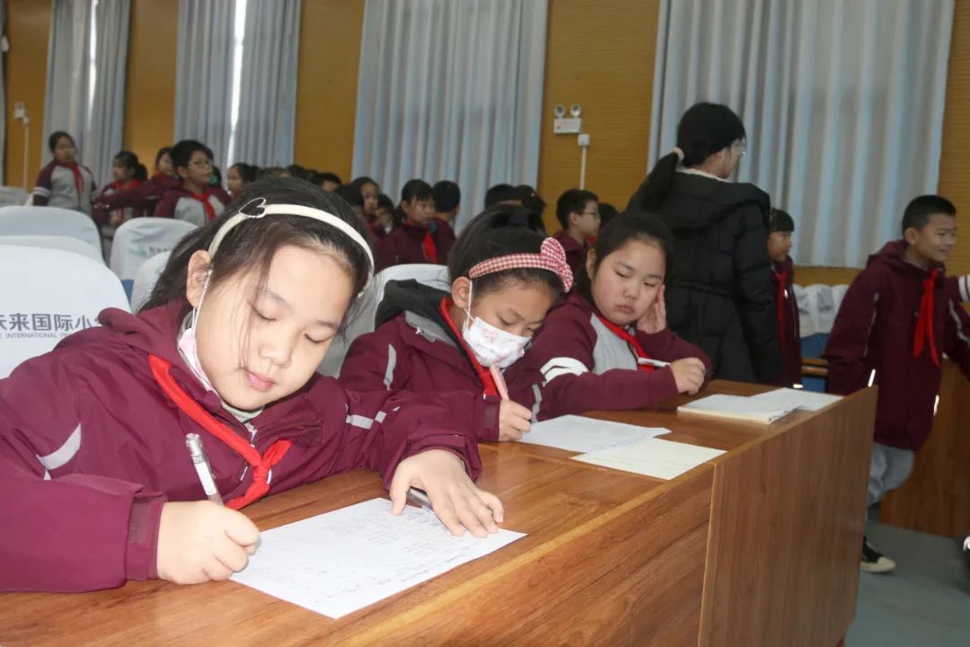 擔任評委的高年級同學則根據(jù)臺上同學們的表現(xiàn),認真記錄下比賽成績。