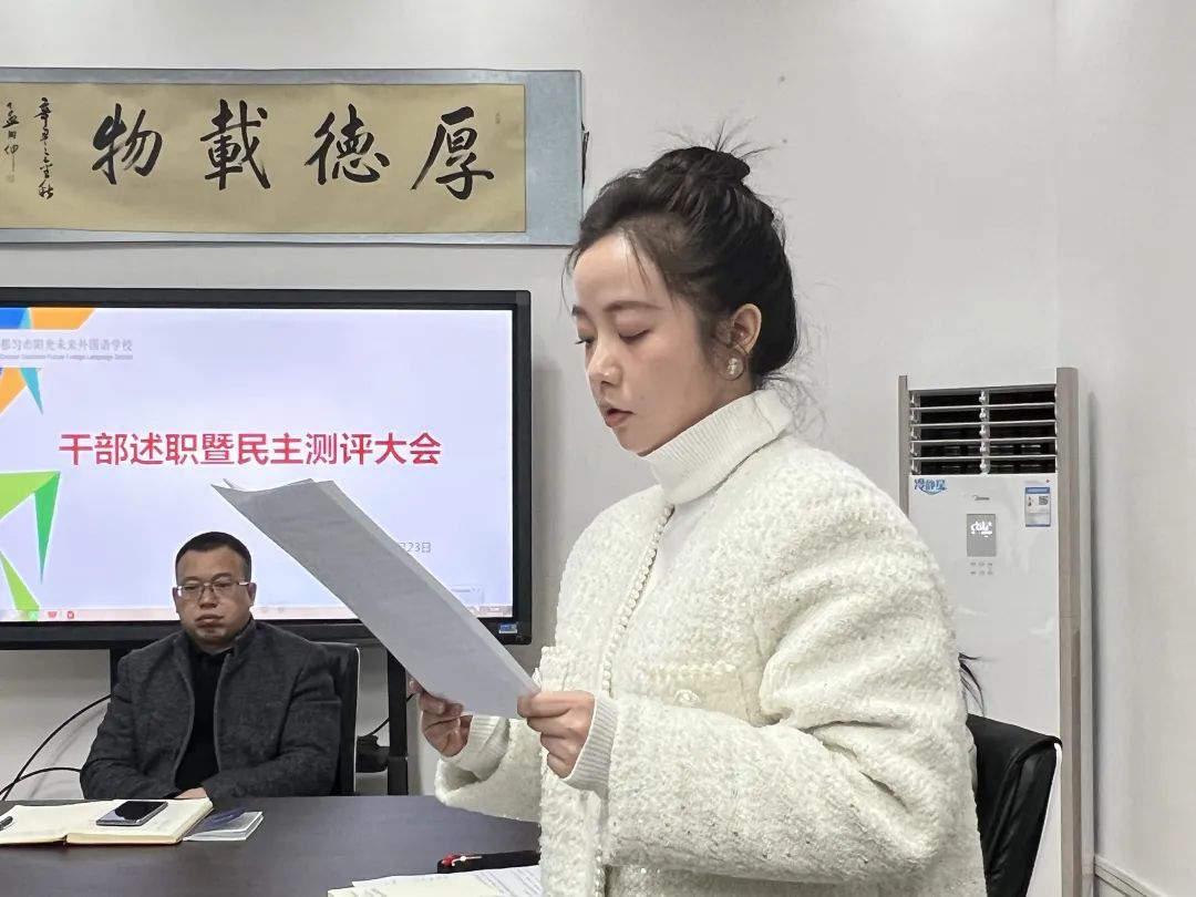 1月23日,我校干部述職暨民主測(cè)評(píng)大會(huì)在經(jīng)師樓三樓會(huì)議室舉行,校區(qū)總校長蒲登文、執(zhí)行校長董曉維、初中部校長萬昱,中層干部及全體教職工參加會(huì)議。