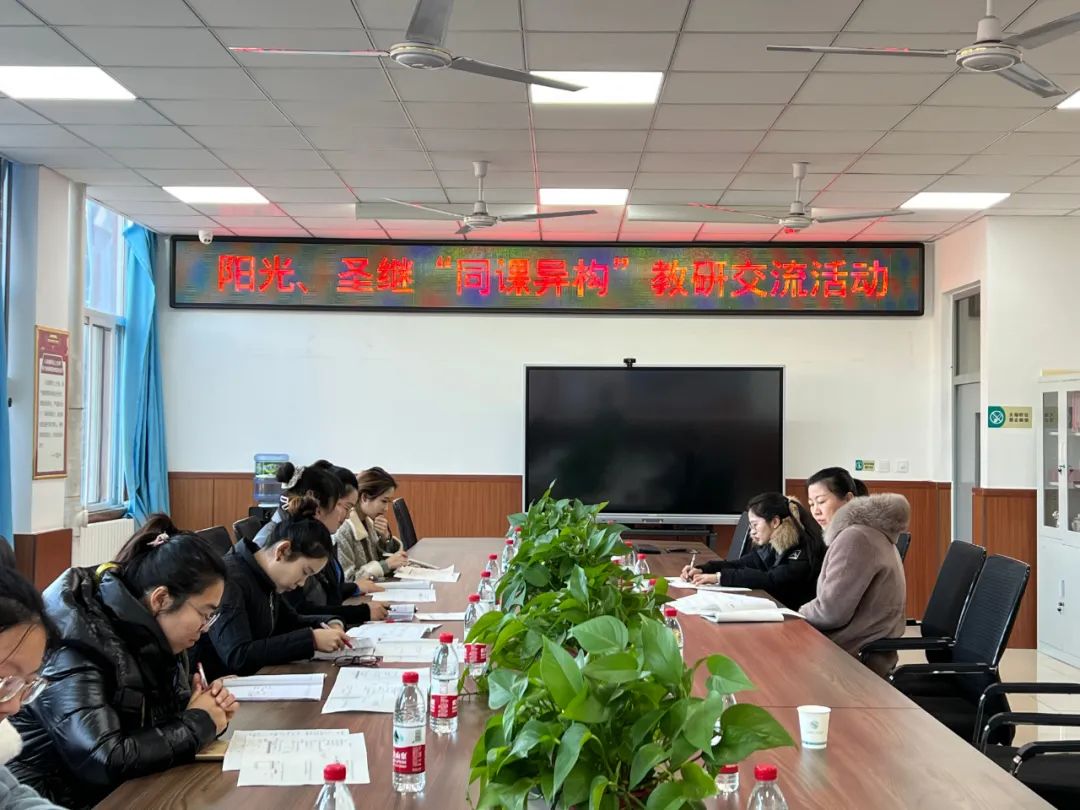 為深化課堂教學(xué)改革,進(jìn)一步提高教師的專(zhuān)業(yè)水平、業(yè)務(wù)能力,努力打造高效課堂,增強(qiáng)校際交流,承德陽(yáng)光未來(lái)實(shí)驗(yàn)學(xué)校與承德圣繼學(xué)校共同開(kāi)展了一次“同課異構(gòu)”教研活動(dòng)。