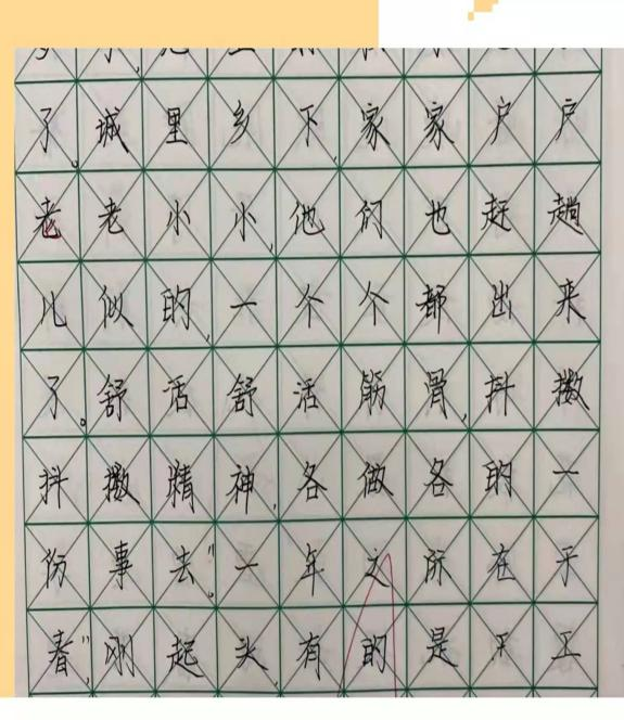 老師對易錯(cuò)點(diǎn)進(jìn)行點(diǎn)播 我校根據(jù)不同年齡制定書法教學(xué)計(jì)劃,提出書寫目標(biāo)。通過堅(jiān)持不懈的學(xué)習(xí),學(xué)生書寫能力逐步提高,同時(shí)學(xué)校正在用書法教學(xué)平臺傳承著中華優(yōu)秀傳統(tǒng)文化藝術(shù),不僅僅加深學(xué)生們對中國文化的熱愛,而且是對學(xué)生們進(jìn)行美育教育的重要途徑, 讓我們的書法課堂煥發(fā)出更加奪目的光彩。