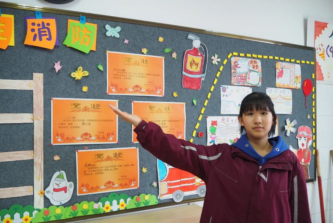 初中部學(xué)生會(huì)同學(xué)們利用課間休息時(shí)間制作了校園黑板報(bào)。