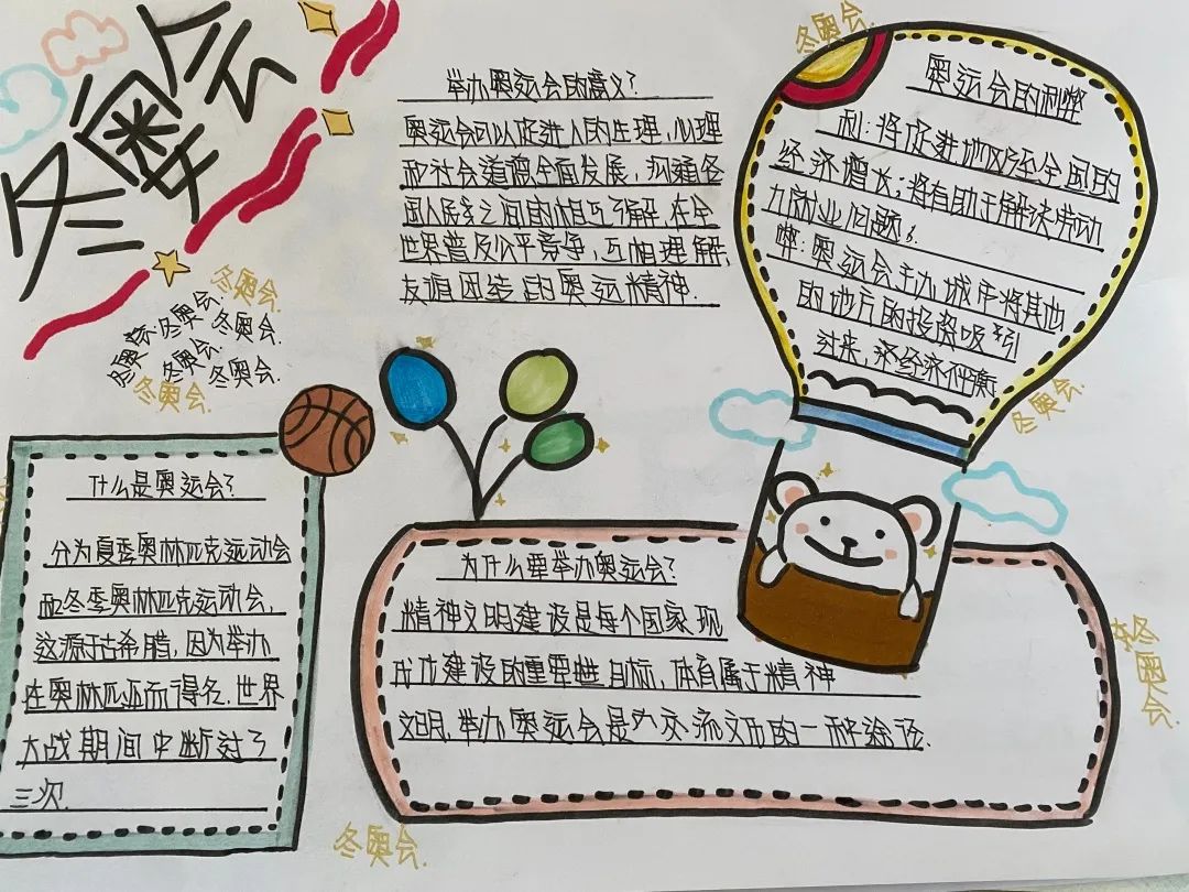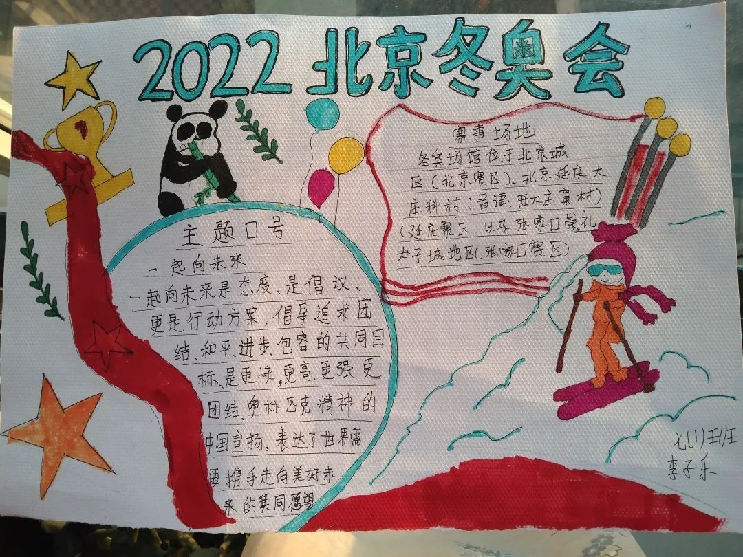 初中部的同學(xué)們?cè)诩倨诘牡掠鳂I(yè)中制作了冬奧會(huì)手抄報(bào)。