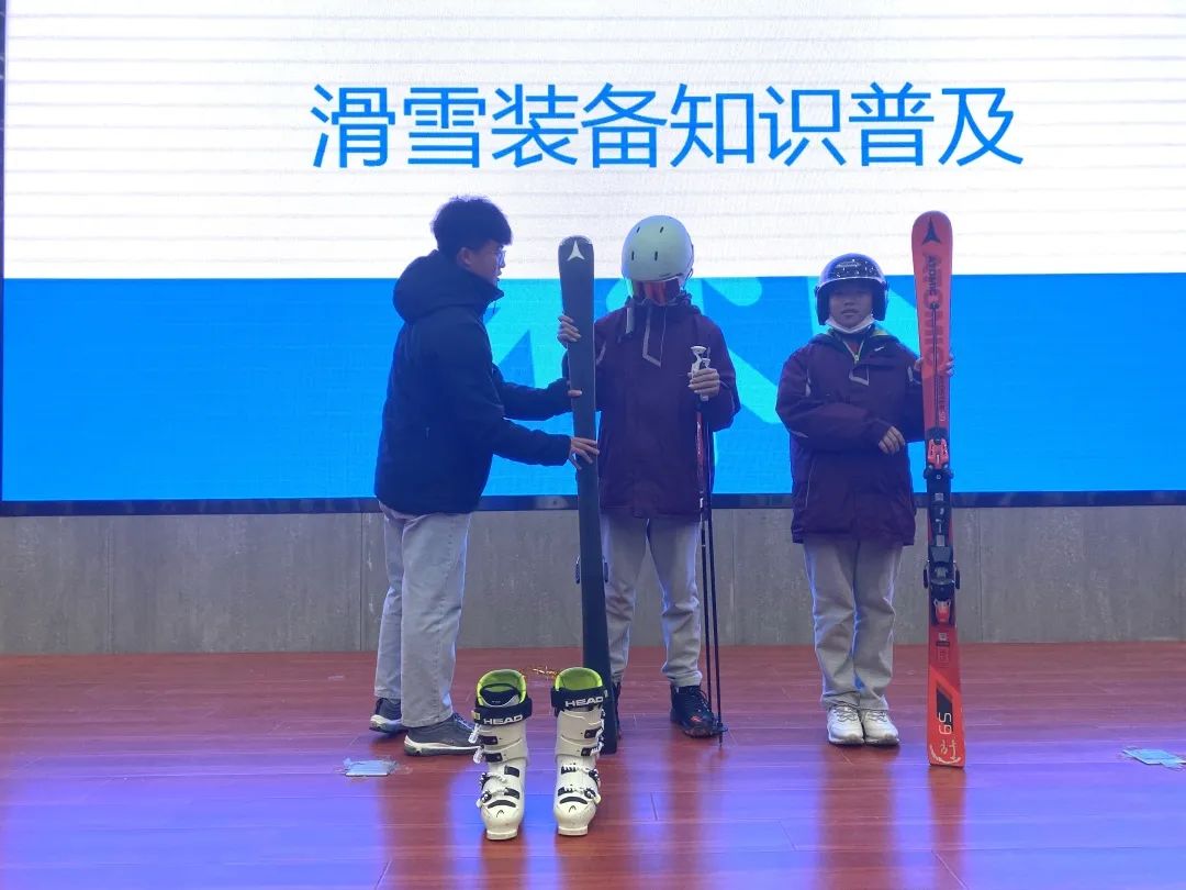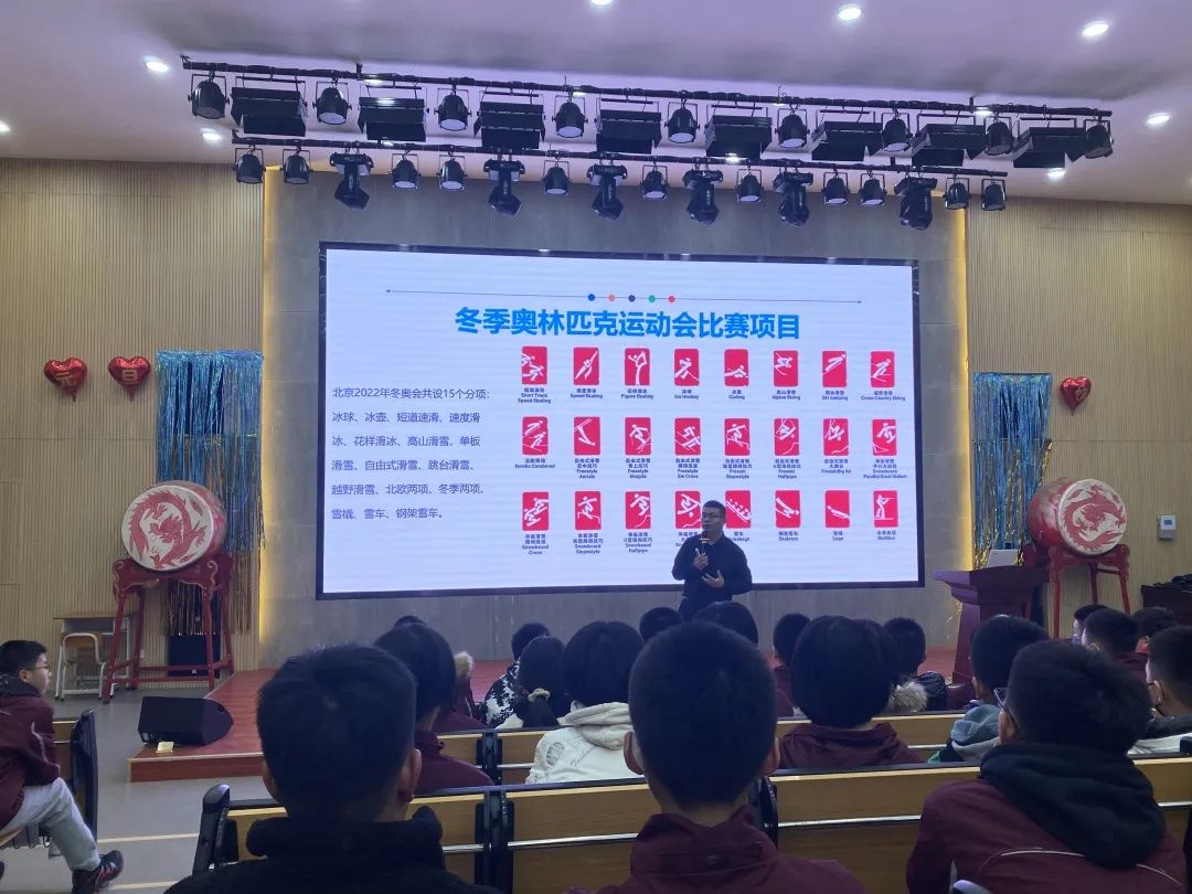 學(xué)校為同學(xué)們開(kāi)展了冬奧會(huì)的知識(shí)講座,讓他們更了解北京冬奧會(huì)、比賽項(xiàng)目、滑雪裝備知識(shí)等。