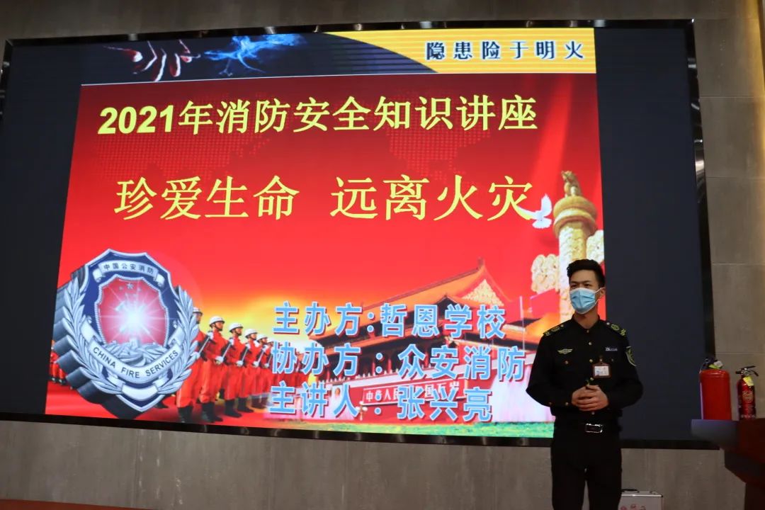 如何從身邊發(fā)現(xiàn)火災(zāi)隱患,如何做到防患于未然,如何從火災(zāi)中正確逃生,為進(jìn)一步提高校園消防安全意識(shí),增強(qiáng)應(yīng)急自救能力和自我保護(hù)能力,2021年11月30日下午哲恩學(xué)校舉辦了消防安全知識(shí)講座,活動(dòng)由眾安消防張興亮老師主持。