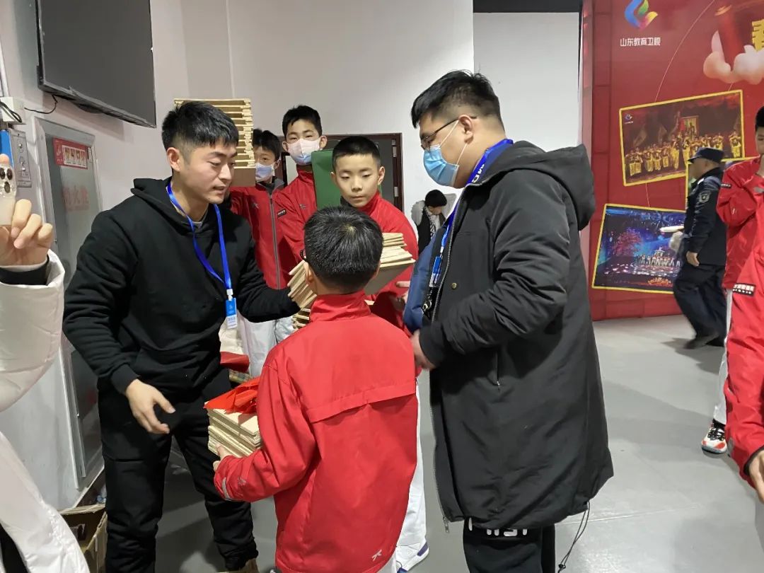 2022年1月9日,5點50分,臘月的冬日,天氣愈見寒冷,天還未亮,陽光未來學(xué)校的食堂大門就已經(jīng)打開,因為今日陽光未來學(xué)校的學(xué)子們要去山東省少兒春節(jié)聯(lián)歡晚會參加節(jié)目的錄制。只見同學(xué)們已穿好演出服早早地來到了食堂。參加節(jié)目錄制住校的同學(xué)們有秩序從餐廳打飯吃飯。6:00所有的藝體教師均已到崗,在前一天已分配好了各自的分工和任務(wù),以確?;顒拥捻樌M行。 此次參與的同學(xué)人數(shù)達156人,每一輛車上都配備了4—6名的藝體老師。此次活動負(fù)責(zé)人有: 德州陽光未來國際學(xué)校校長安學(xué)新先生、桃李杯搜星中國青少年文化藝術(shù)人才展示活動組委會藝術(shù)總監(jiān)高華先生、藝體中心主任紀(jì)海春。 出行的藝體中心老師有:藝體中心紀(jì)海春主任、張文豪、從向凱、杜恩、常建民、尹書昊、張衛(wèi)燕、王光豪、王玉智、王韜、張娜、李海洋、張洪帥、梁策、葉曉晴、王夢熙、付玉軒、于佳等老師。
