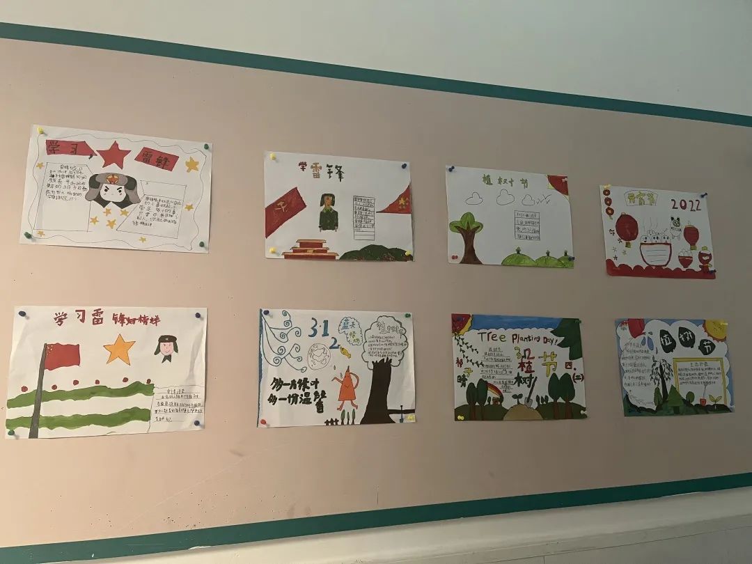 這次展覽作品主題鮮明突出、設(shè)計(jì)獨(dú)特新穎、文字圖畫色彩搭配合理,內(nèi)容豐富多彩,有耳熟能詳?shù)睦卒h事跡,有身邊的好人好事,有植樹節(jié)的來歷......同學(xué)們觀讀后贊不絕口。