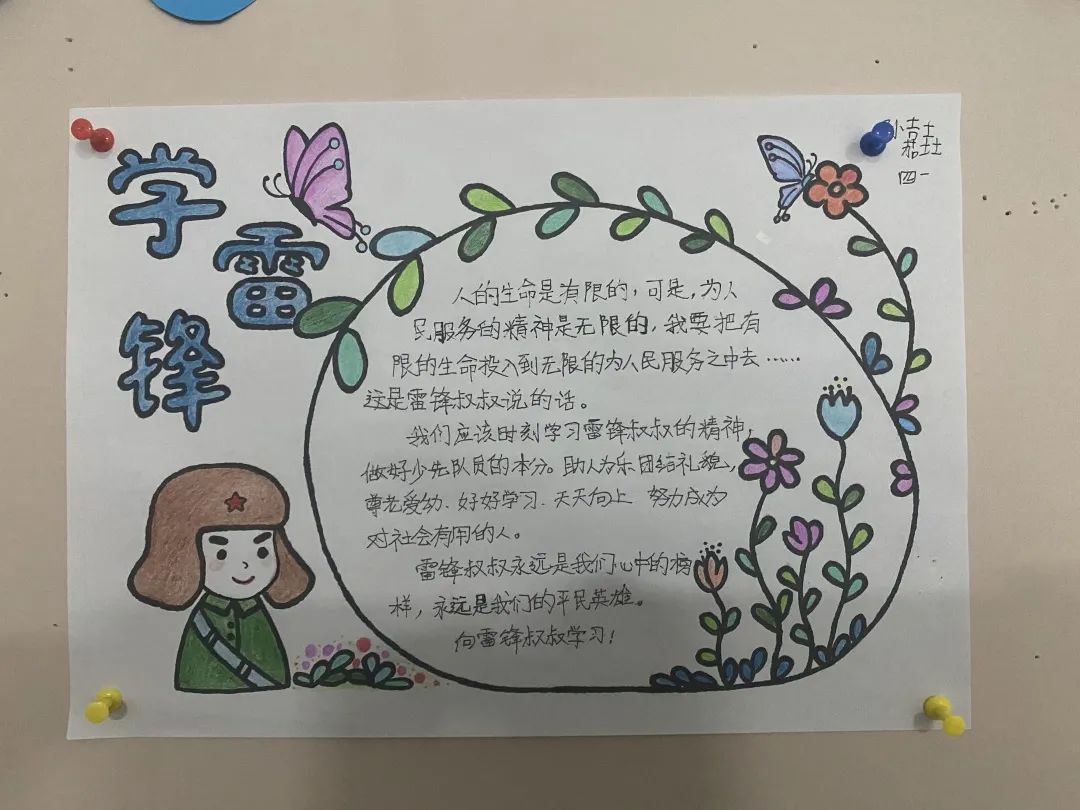 通過這次手抄報(bào)展覽活動(dòng),同學(xué)們對(duì)雷鋒精神有了更加深刻的認(rèn)識(shí),對(duì)植樹節(jié)有了更加清晰的認(rèn)識(shí)和了解,知道了在以后的學(xué)習(xí)生活中,怎樣用實(shí)際行動(dòng)讓雷鋒精神發(fā)揚(yáng)光大。