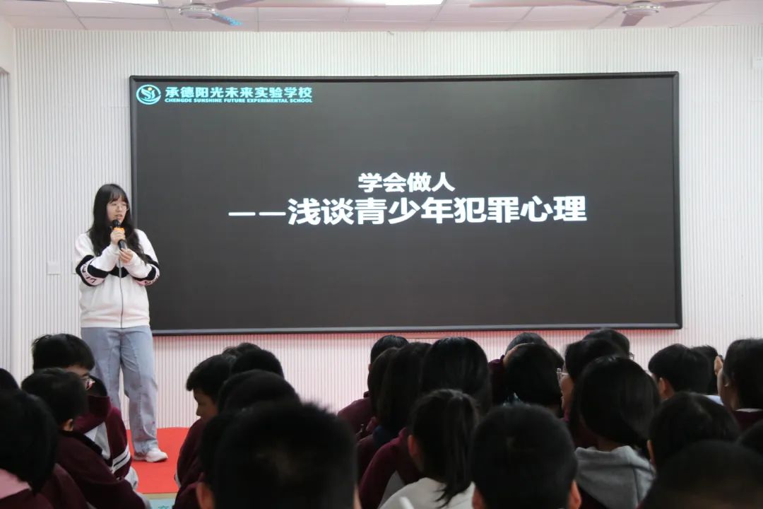 邁好青春步伐,方能走好人生路。 為進(jìn)一步增強(qiáng)學(xué)生的法制紀(jì)律觀念,樹(shù)立正確的人生觀、價(jià)值觀,預(yù)防學(xué)生違法犯罪,促進(jìn)學(xué)生健康成長(zhǎng),營(yíng)造安全良好的校園環(huán)境。我校初中部組織開(kāi)展了“預(yù)防青少年違法犯罪”的主題的德育講座,講座由我校心理咨詢(xún)教師孫文主持演講。