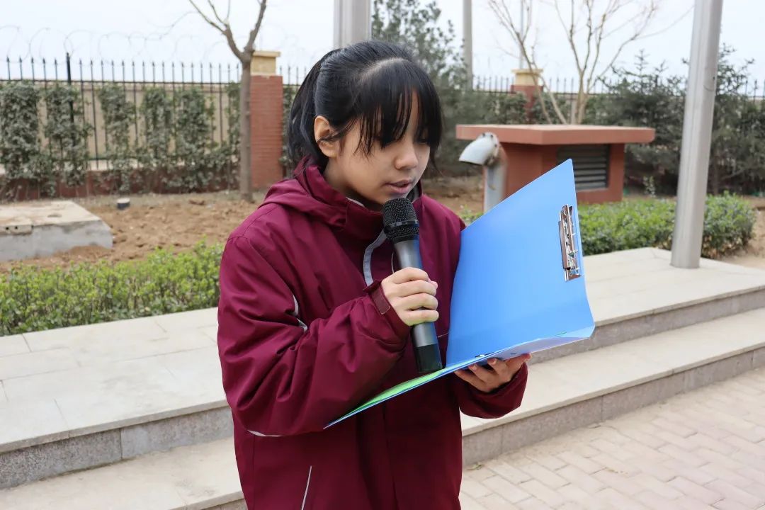 七年級(5)班王紫嫣做國旗下演講 爭做校園活雷鋒