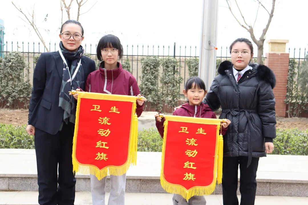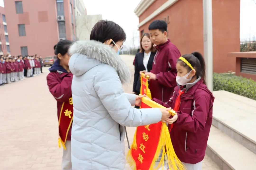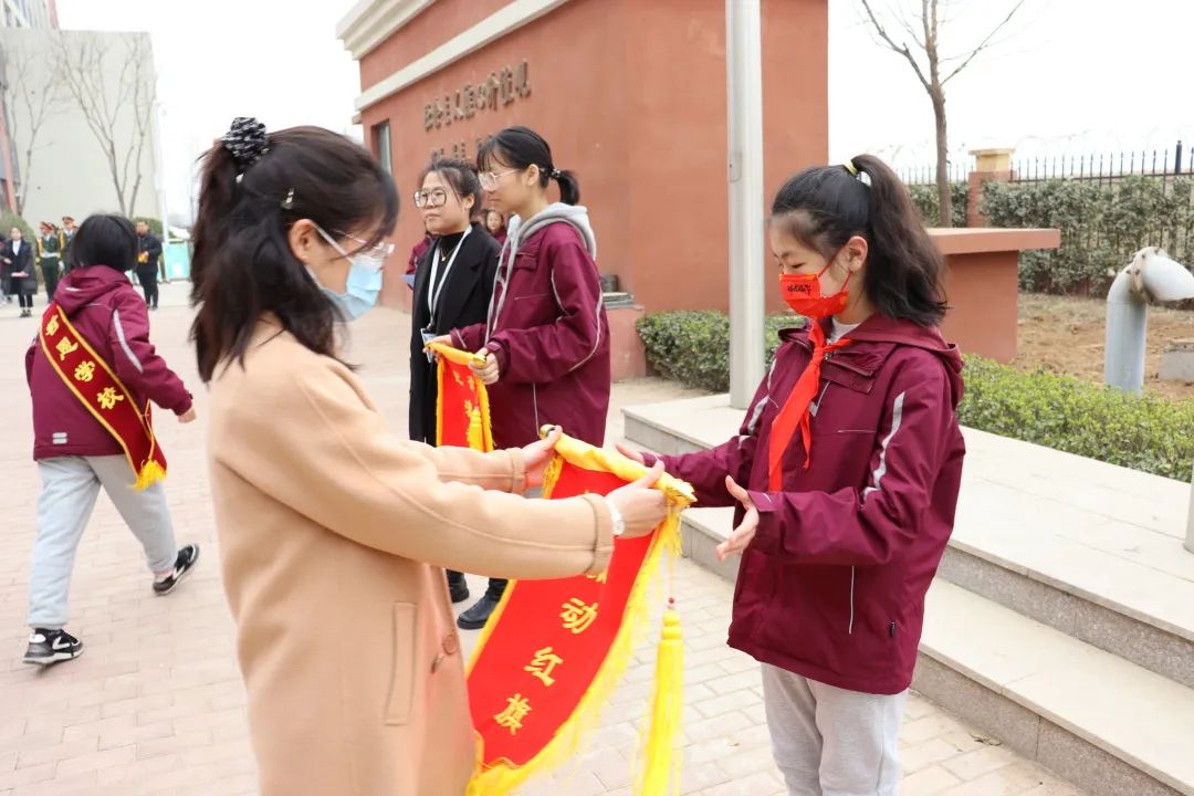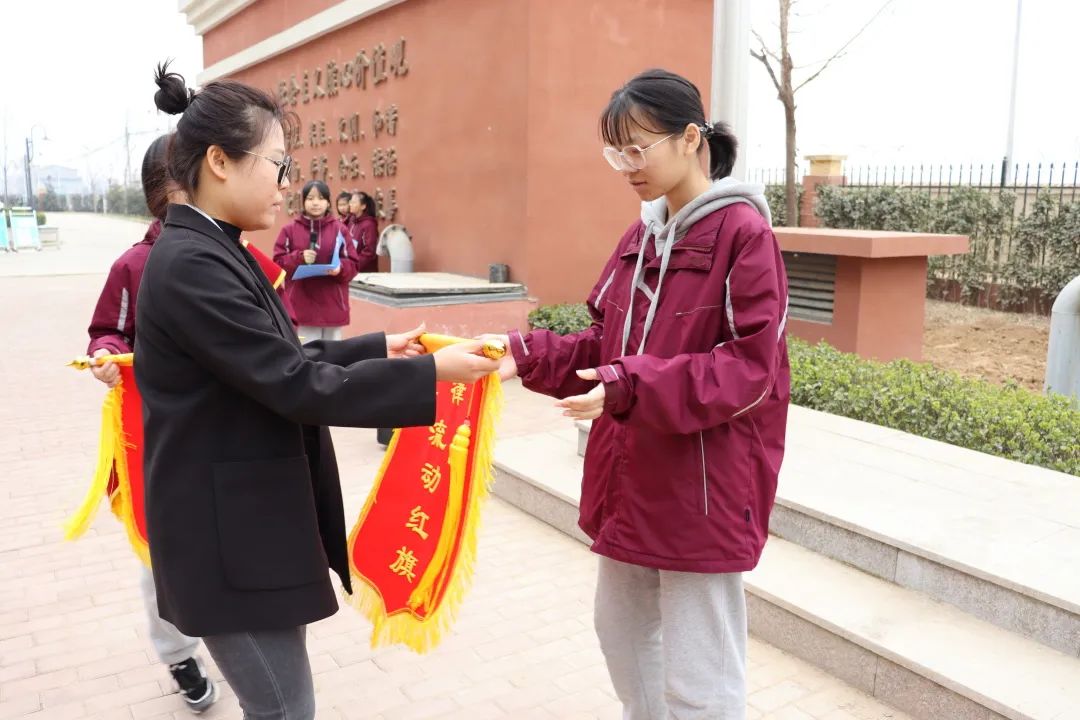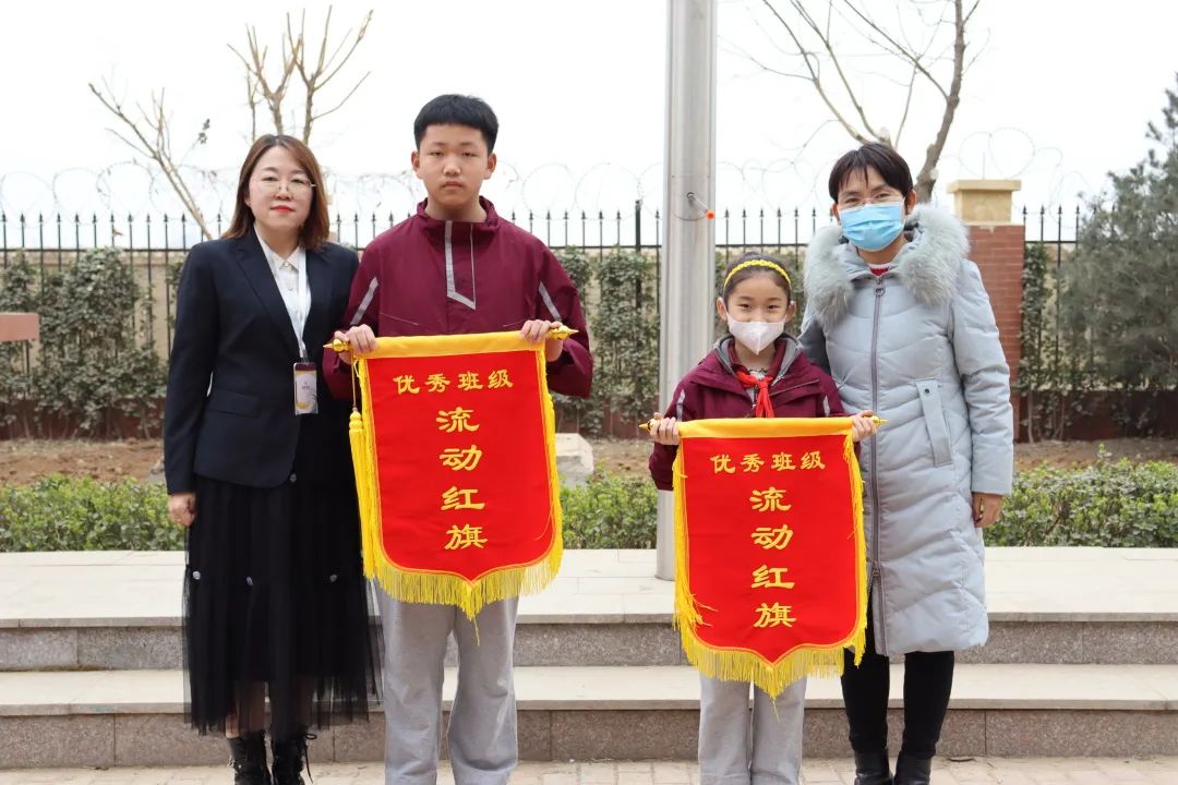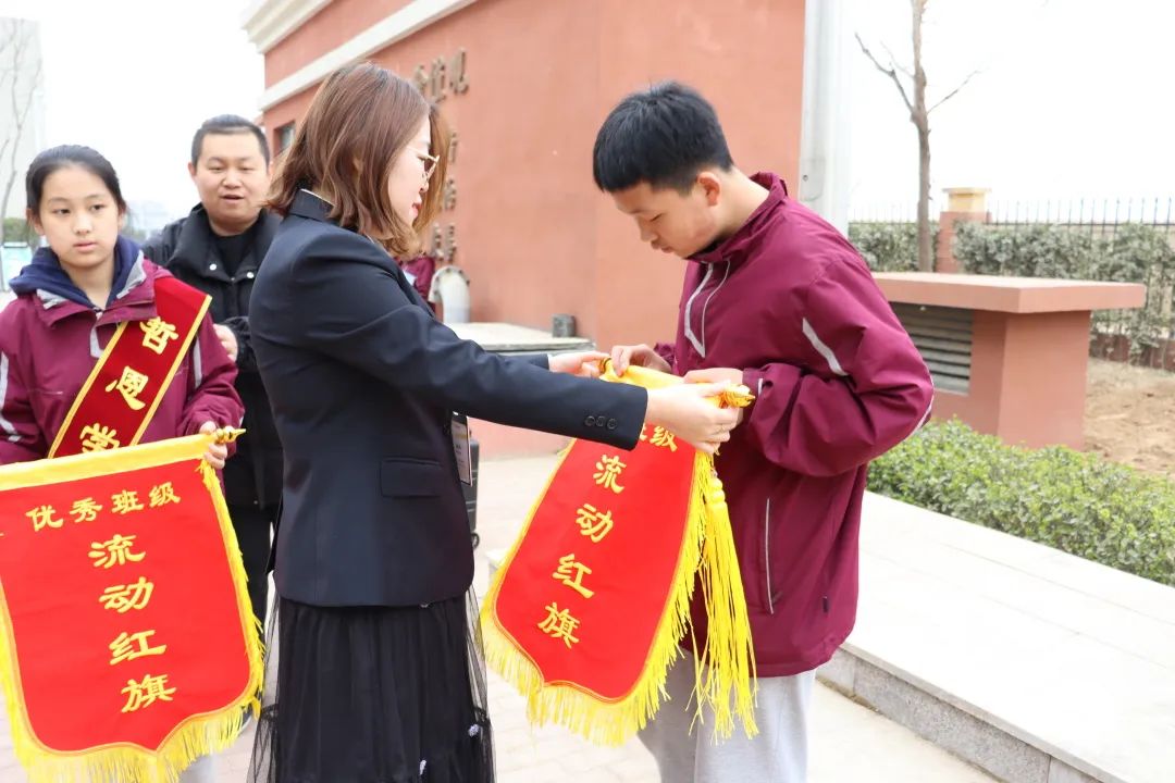 各班班主任分別為優(yōu)秀班集體頒發(fā)流動紅旗