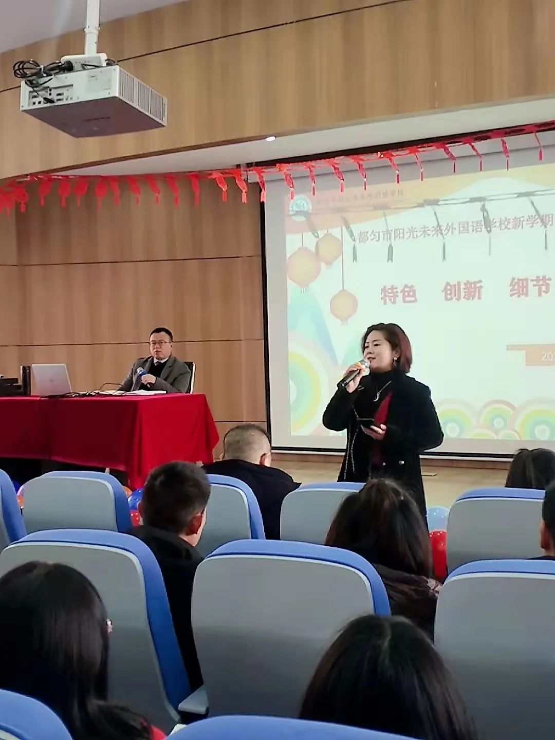 萬(wàn)象更新時(shí),乘風(fēng)再出發(fā)。2022年2月15日,都勻市陽(yáng)光未來(lái)外國(guó)語(yǔ)學(xué)校新學(xué)期教職工大會(huì),在經(jīng)師樓四樓報(bào)告廳隆重召開(kāi),會(huì)議共有五十余名教職工參加,以“特色、創(chuàng)新、細(xì)節(jié)、質(zhì)量”為主題,開(kāi)啟了新學(xué)期奮斗的新征程。
