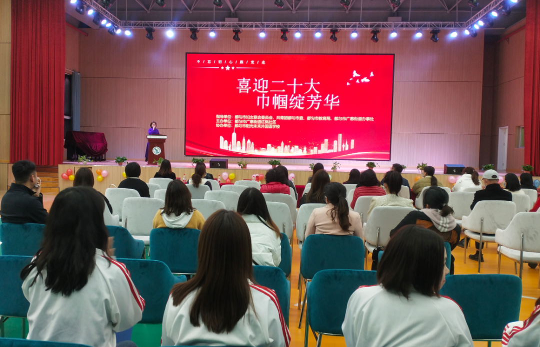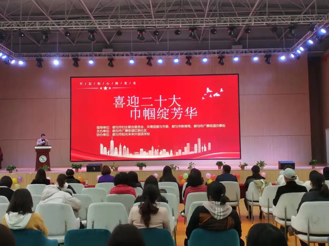 陽春三月,草長鶯飛。第112個三八國際婦女節(jié)如期而至,3月7日晚,以“喜迎二十大,巾幗綻芳華”為主題的三八國際婦女節(jié)紀念活動在我校修身館舉行。都勻市婦女聯(lián)合委員會、共青團都勻市委、都勻市教育局、都勻市廣惠街道辦事處、都勻市廣惠街道紅楓社區(qū)、都勻市陽光未來外國語學校等相關(guān)部門單位干部職工群眾參加活動。