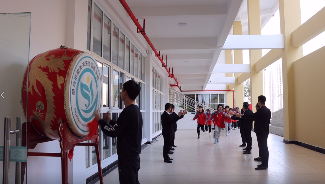 誓師大會(huì)在雄渾的擊鼓聲中拉開(kāi)了帷幕,老師分站兩旁,和奔跑沖刺的學(xué)生——擊掌。之后,同學(xué)們自信堅(jiān)定地奔入陽(yáng)光大講堂,預(yù)示著百天沖刺正式開(kāi)始。