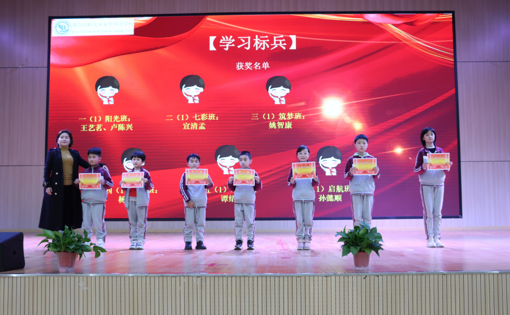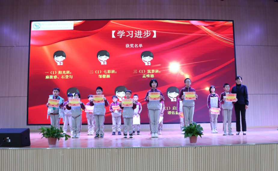 典禮開始 典禮在雄壯的國歌聲中拉開序幕,緊接著的班級互動游戲——蘿卜蹲營造了歡快的典禮氛圍。 表彰優(yōu)秀師生 隨后,德育處副主任黃隆婷依次宣讀2021——2022第一學(xué)期學(xué)習(xí)標(biāo)兵、學(xué)習(xí)進(jìn)步獎、品格銀行首富、優(yōu)秀教師、優(yōu)秀班主任的表彰名單。校領(lǐng)導(dǎo)和各部門主任為老師、同學(xué)們頒發(fā)榮譽(yù)證書、獎杯。