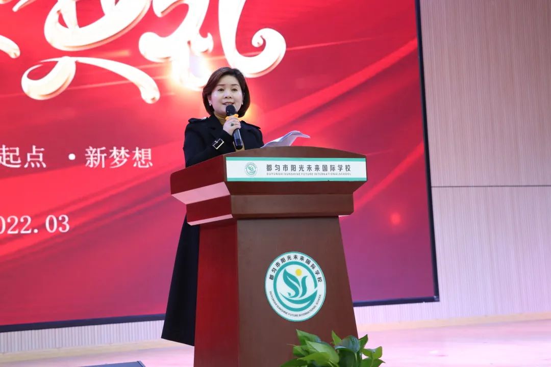 春回大地,萬物復(fù)蘇。沐浴著暖陽和春風(fēng),帶著對新學(xué)期的美好期盼,2022年3月16日,都勻市陽光未來外國語學(xué)校迎來了春季學(xué)期開學(xué)典禮。執(zhí)行校長董曉維、初中部校長萬昱出席典禮,和全校師生一同開啟新的征程。開學(xué)典禮由德育處副主任黃隆婷策劃并主持。 典禮現(xiàn)場