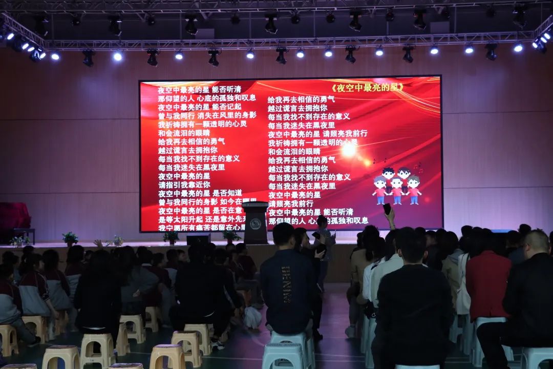 董校代表學(xué)校校委會向博學(xué)精進(jìn)、厚德厚生、辛勤工作、無私奉獻(xiàn),為陽光發(fā)展做出貢獻(xiàn)的全體教職員工致以崇高的敬意;向陽光擔(dān)當(dāng)、樂學(xué)善思、知行合一、努力學(xué)習(xí),為學(xué)校增光添彩的全體同學(xué),表示親切的慰問;對榮獲優(yōu)秀班主任、優(yōu)秀教師、學(xué)期品格銀行首富、學(xué)習(xí)標(biāo)兵等榮譽(yù)的老師和同學(xué),表示最熱烈的祝賀。 董校說到,2022年,是充滿希望的一年,也是我們同心同向,聚力發(fā)展的關(guān)鍵年。2022年,我們堅(jiān)持以都勻老百姓對教育的期盼為著眼點(diǎn),扎實(shí)推進(jìn)教學(xué)精細(xì)化管理,提升全體教師執(zhí)教能力,提高課堂教學(xué)效率,全面提高教育教學(xué)質(zhì)量。堅(jiān)守立德樹人,五育并舉,追求并努力實(shí)現(xiàn)每一位同學(xué)的全面而又個(gè)性的發(fā)展。2022年,我們要聚焦基礎(chǔ)教育研究,在課堂訓(xùn)練、德育創(chuàng)新、課程研發(fā)、學(xué)生素質(zhì)評價(jià)等方面深耕細(xì)作,同時(shí),推進(jìn)幼升小、小升初的學(xué)段融通和學(xué)科整合教學(xué)模式,關(guān)注社會熱點(diǎn),開拓學(xué)生視野,提升學(xué)生綜合素養(yǎng);2022年,我們要提升教育服務(wù)能力,在安全管理、餐飲住宿、成長規(guī)劃、學(xué)業(yè)幫扶、特長發(fā)展、心理援助等方面共同努力,為學(xué)校又好又快的發(fā)展做出新貢獻(xiàn),全力打造都勻品牌名校。 典禮最后 最后,全體師生共唱《夜空中最亮的星》,開學(xué)典禮落下帷幕。和風(fēng)送暖,大地回春。在這美好的春光里,積極進(jìn)取、銳意勃發(fā)的陽光人將繼續(xù)用激情點(diǎn)燃夢想,用理想照亮人生。新的學(xué)期,我們一起勇攀高峰,逐夢新征程。