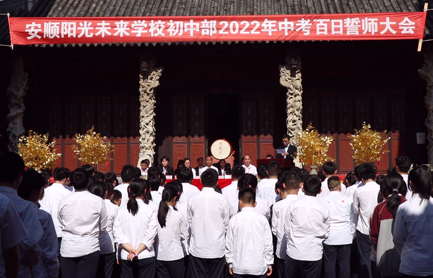 初春三月,春寒料峭;憧憬六月,熱血沸騰。為進(jìn)一步鼓舞士氣,激發(fā)初三學(xué)子的昂揚(yáng)斗志和拼搏精神,以良好的狀態(tài)備戰(zhàn)中考,3月17日下午16點(diǎn),安順陽光未來學(xué)校初三年級全體師生滿懷激情迎來中考百日誓師大會。本次大會由劉昌龍副校長主持。