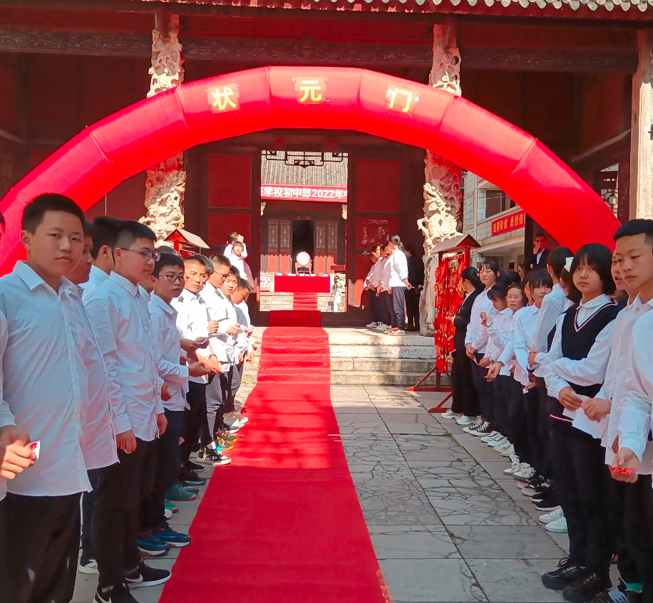 前進(jìn)的號角已經(jīng)吹響,必勝的信心盈滿胸襟。初三學(xué)子們跑過成功門,兩旁的七年級學(xué)弟學(xué)妹們、科任老師們在助力成功門的兩旁擊掌鼓勵學(xué)子們。